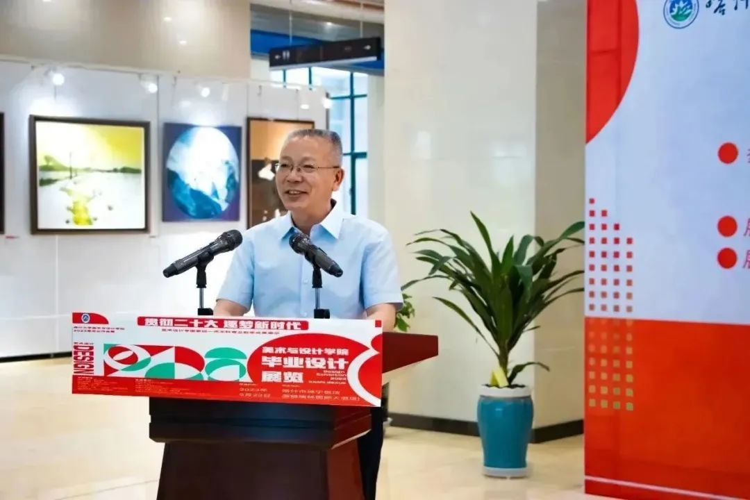 5月24日,我校美术与设计学院在新泉校区图书馆南门一楼举办了“贯彻二十大·逐梦新时代”2023届毕业生作品展开幕式,校党委书记丁邦文出席并讲话,在家校领导班子成员、美术与设计学院师生参加开幕式。