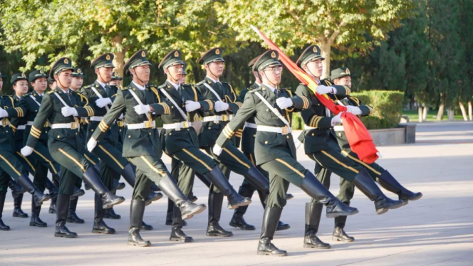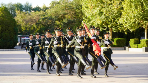 晨光中,国旗仪仗队迈着铿锵有力的步伐走向升旗台,在激昂的国歌声中升起鲜艳的五星红旗。师生们高唱国歌、庄严肃立,向冉冉升起的五星红旗行注目礼,向国旗、向伟大祖国致敬。