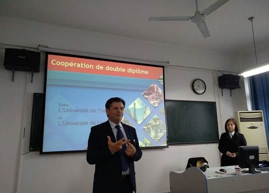 4月24日下午四时,受我校外国语学院邀请,法国土伦大学管理学院院长Jean Galanos和巫晓慧博士来我校宣讲交流,就2018年土伦大学与我校的校级交流项目进行详细讲解。湖北大外国语学院法语系学生以及教师参加了此次宣讲会,并与Jean Galanos院长亲切交流。
