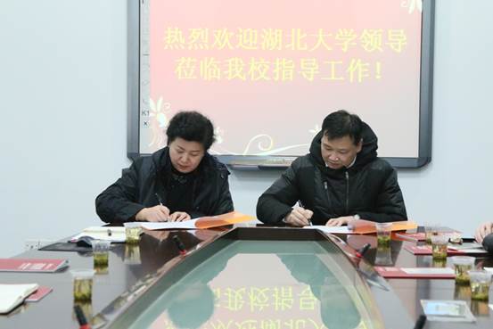 会议由武汉六中校办主任杨文主持,首先任校长对我校一行推进共建实习实训工作表示热烈欢迎,任校长表示,武汉六中4成教职工都是湖大校友,每年都有一批毕业生进入湖北大学继续深造,武汉六中与湖北大学可谓血脉相连、办学相继,此次实习基地的正式建立也是两校友好关系的又一重要纽带。