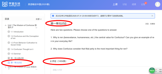 《英语畅谈中国文化》课程代表周赟赟老师总结如下:一是备课。全组提前两周确定教学计划,提前模拟在线教学;分工准备教学内容;明确任务清单目标,以产出为导向。二是线上课。发布每周任务清单,明确学习任务;慕课部分依托学堂在线平台,提前设置讨论内容;教材部分侧重原文及翻译、课后语言点练习、等;利用QQ群作业功能布置课后作业。三是当前面临的困难。部分学生由于网络原因,无法及时参与课堂教学;线上课与后期返校复课的衔接性;学生小组活动的操作性等。
