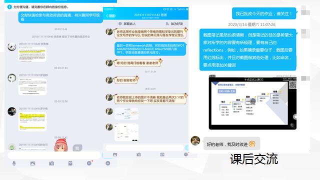 外教社杯全国高校外语教学大赛特等奖获得者——许洲老师率先开讲,他介绍了自己网络授课期间秉持的原则,即为学习热情高的学生提供尽可能多的吸收知识的机会,同时对自觉性欠佳的学生加强监督,确保不掉队。为此,许老师以两个教学重心为主线,与学生互动答疑。一是培养学生的学习兴趣。他以丰富的时事话题和练习方式与学生沟通交流,着力提升学生的知识迁移能力。二是督促学生完成任务。他每周会在群里公布任务完成进度,并警告未按时完成的学生;通过实时互动确保学生的参与度与专注度;每周布置两次四级听力练习和一篇四级翻译或写作;定期随机抽查学生的学习笔记等。