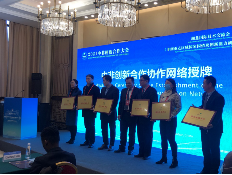 此外,为推动中国和非洲国家的技术转移与合作、青年创新创业和科技人文交流等,大会倡议中国及非洲国家高等院校、科研院所、科技园区、高新技术企业、技术转移机构以及其他配套服务机构等单位成立“中非创新合作中心协作网络”。湖北大学外国语学院成为首批13家协作网络单位之一,吕奇副院长代表学院接受授牌。