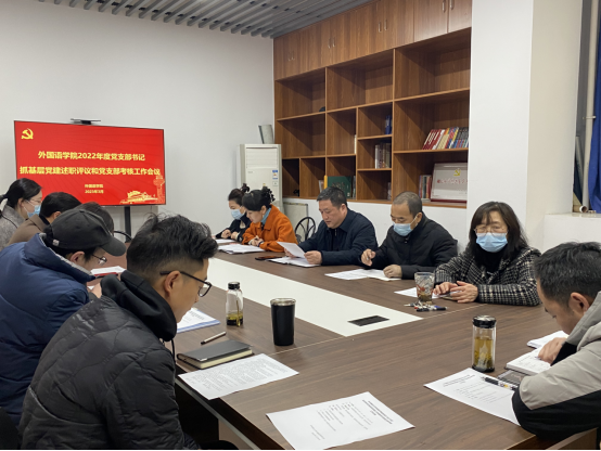 3月1日下午,外国语学院2022年度党支部书记抓基层党建述职评议和党支部考核工作会在学院党员活动室召开。学院领导班子成员、党委委员、专职组织员和各党支部书记参会,会议由学院党委副书记占婧主持。