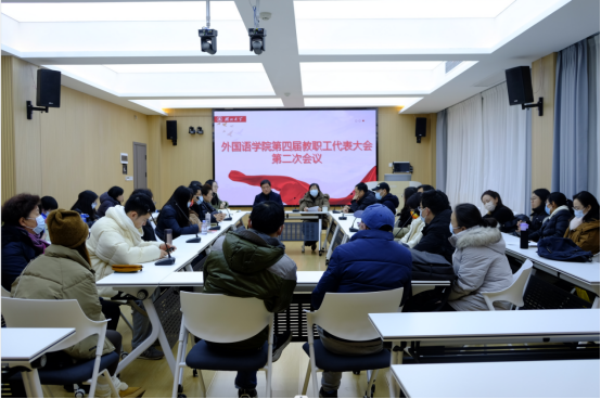 1月19日,湖北大学外国语学院在逸夫人文楼A3014隆重召开第四届教代会第二次会议,40名正式代表参加会议,学院党委书记刘建伟主持会议。