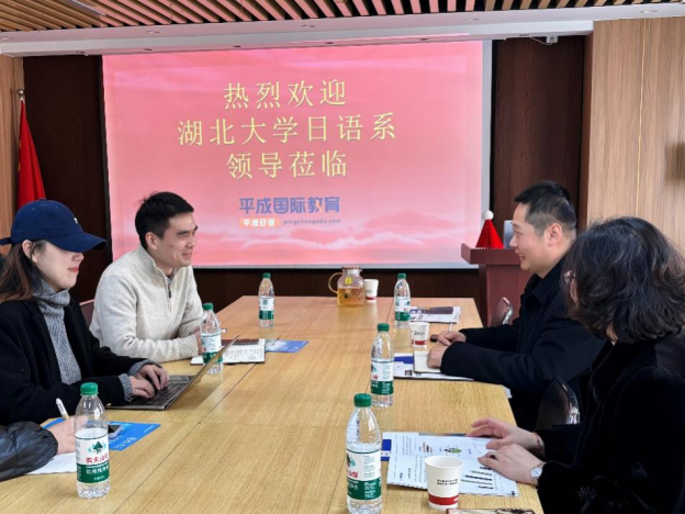 12月19日,湖北大学外国语学院日语系主任梁青、副主任刘海燕一行赴平成国际教育有限公司访问。双方就本硕学生实习和就业、学生职业教育、校企教研合作等方面进行了深入交流。