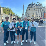 2024年8月,2021届毕业生董晨(左二)在巴黎奥运会期间担任马拉松赛事志愿者