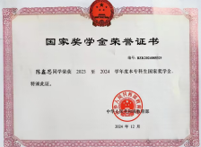 2025届学生陈鑫思荣获的国家奖学金证书