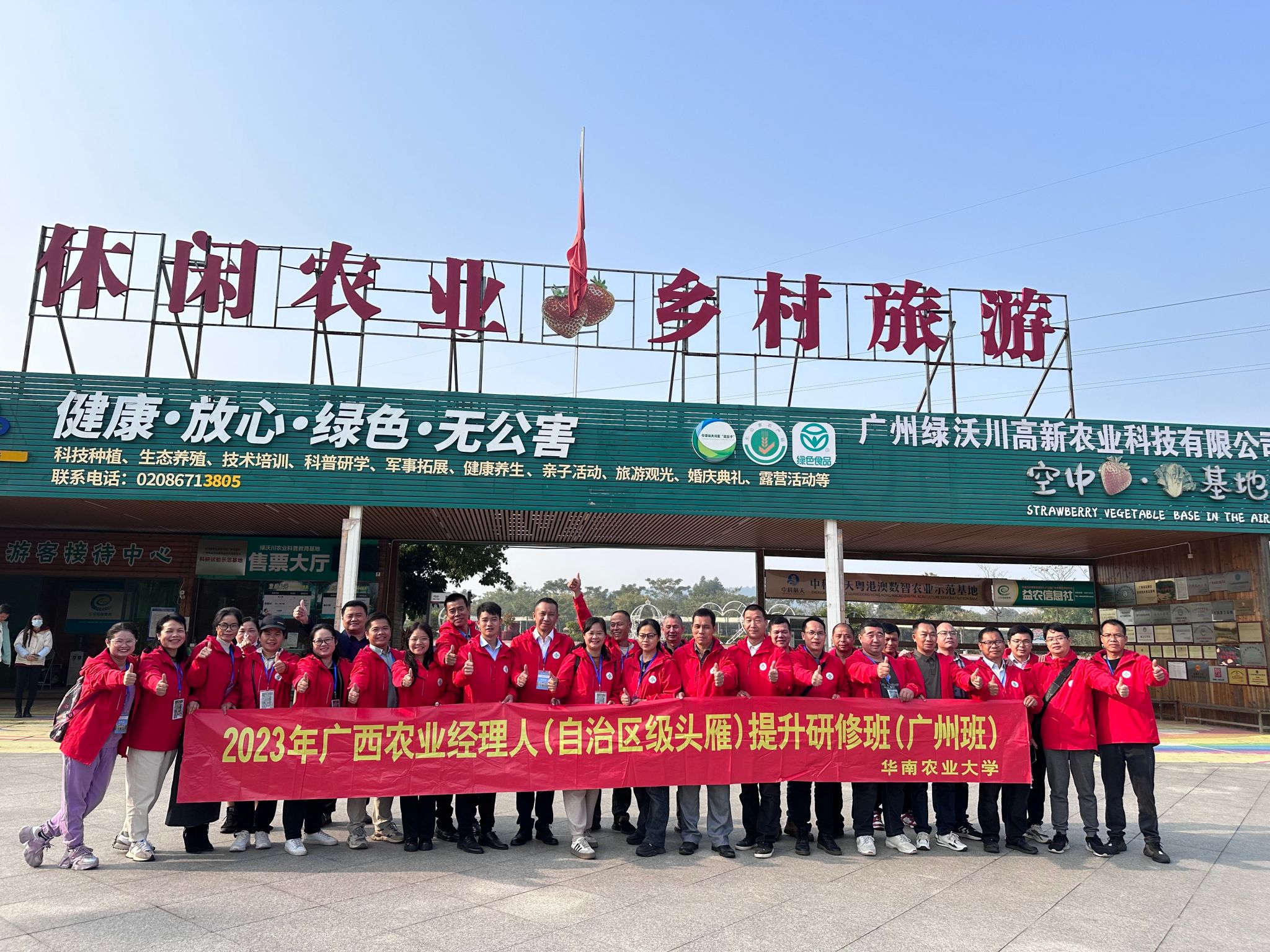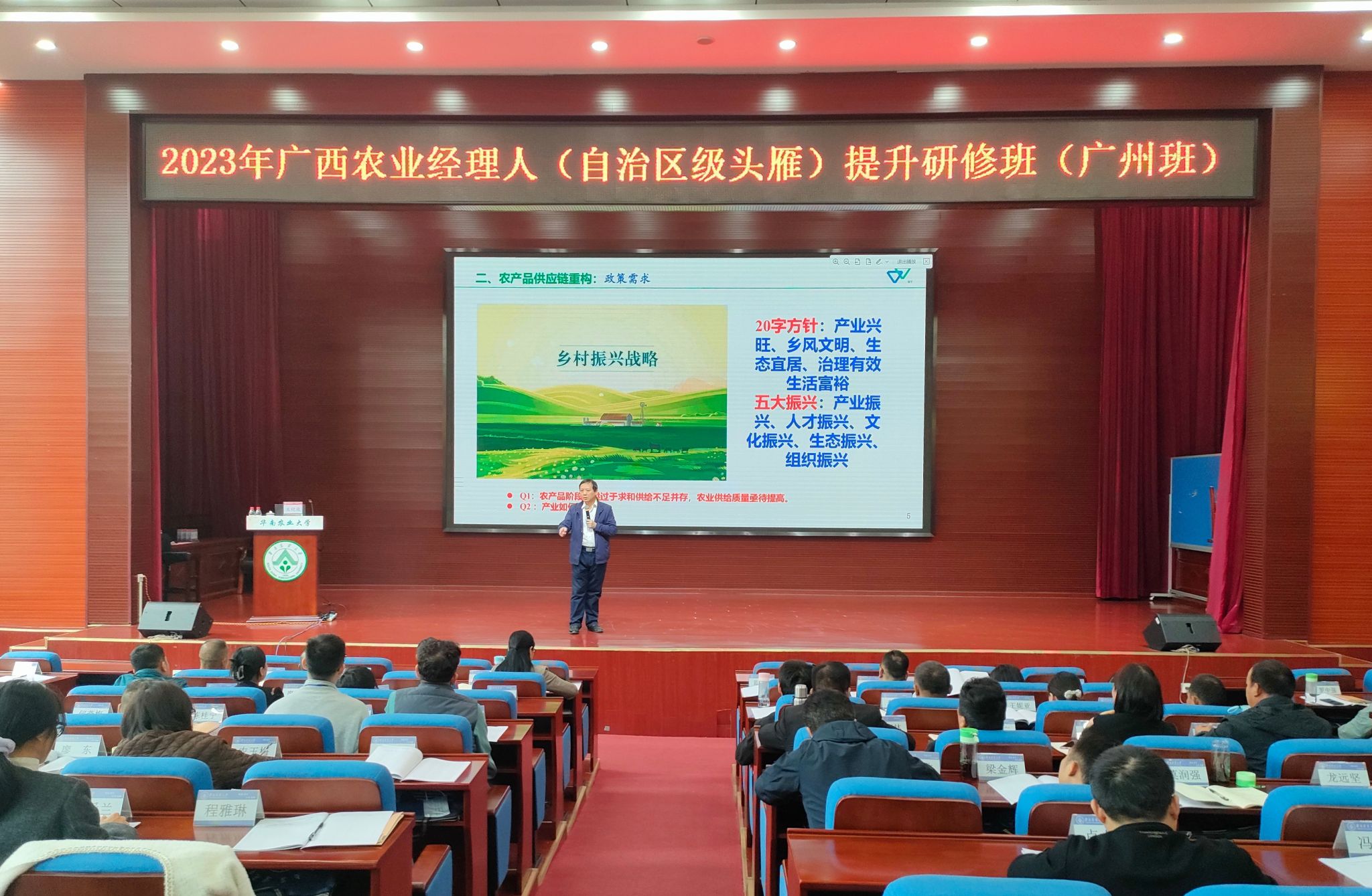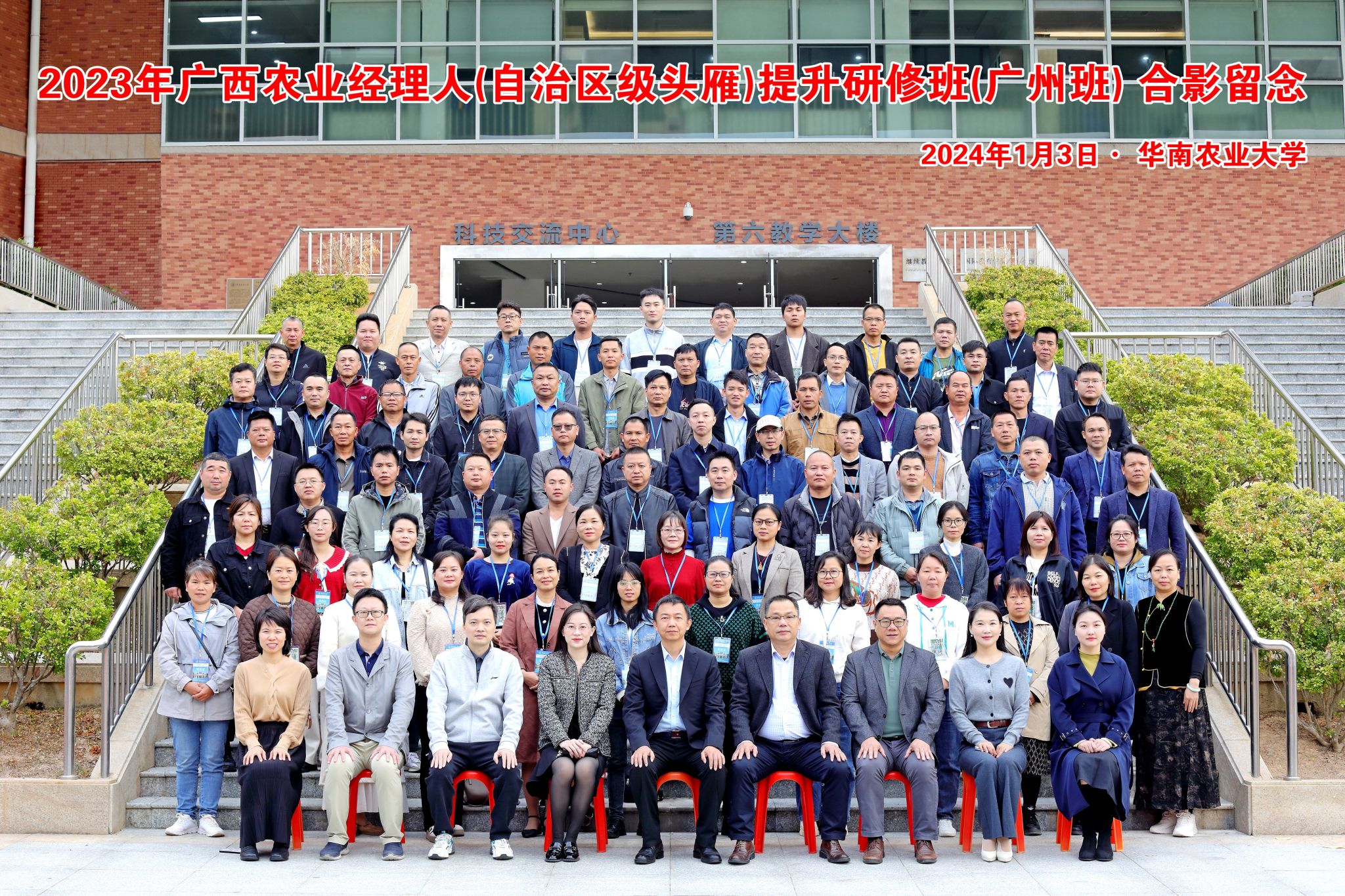 在自治区农业农村厅的大力支持下,由我校和华南农业大学联合承办的2023年第三期广西农业经理人(自治区级头雁)提升研修班(广州班)于2024年1月2-7日在广州华南农业大学顺利开班。华南农业大学继续教育学院院长傅洪勋、副院长郑灯,我校继续教育学院院长徐健、副院长叶郁出席了开班仪式。来自全区86名学员参加了培训。