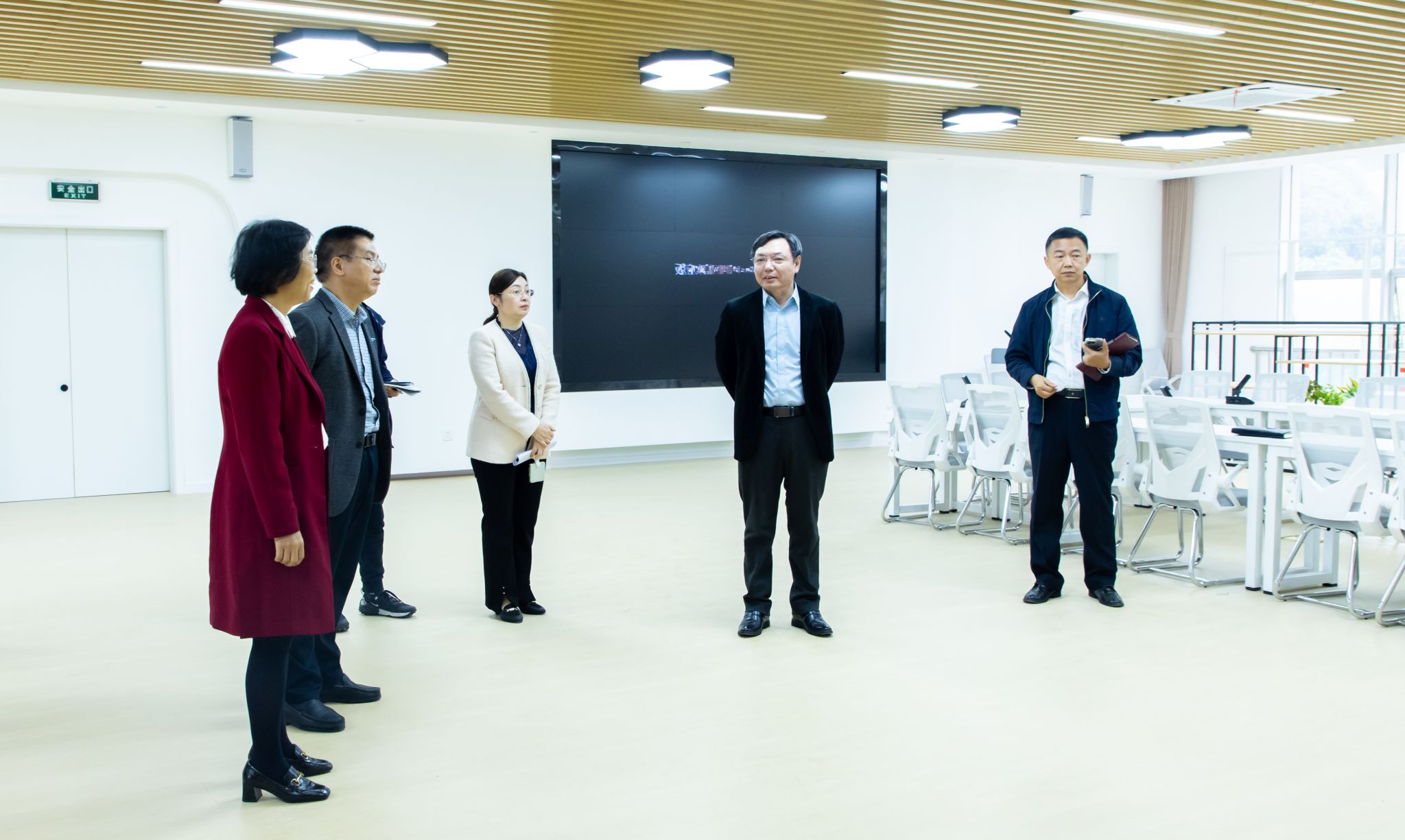 李传起校长一行现场查看了广西本科教育成果展示厅及中心办公室改造建设的有关情况,并详细询问了中心硬件建设及室内布置计划。