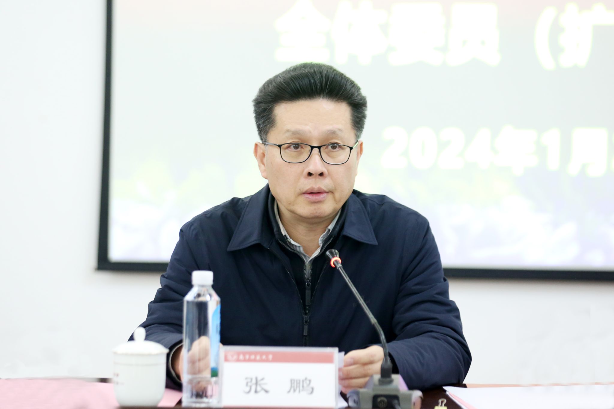 1月23日上午,我校召开学校党委全委会(扩大会)。校领导张鹏、李传起、侯代忠、隆广庆、徐书业、李兰荣、赵伟、李美清、肖琦、龙妮娜、梁家斌,校党委委员,纪委委员,二层机构党组织书记(含主持工作)参加会议。会议由学校党委书记张鹏主持。