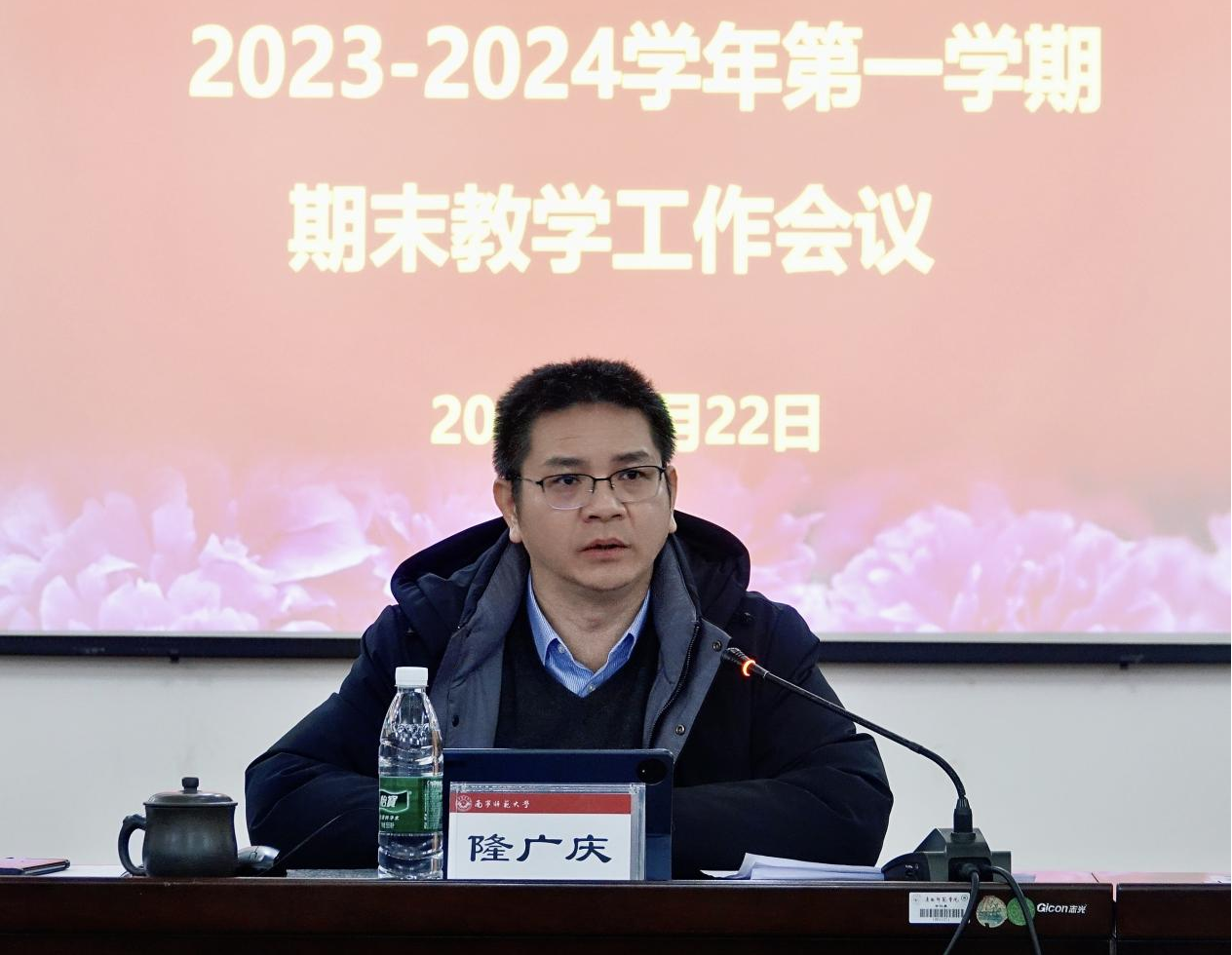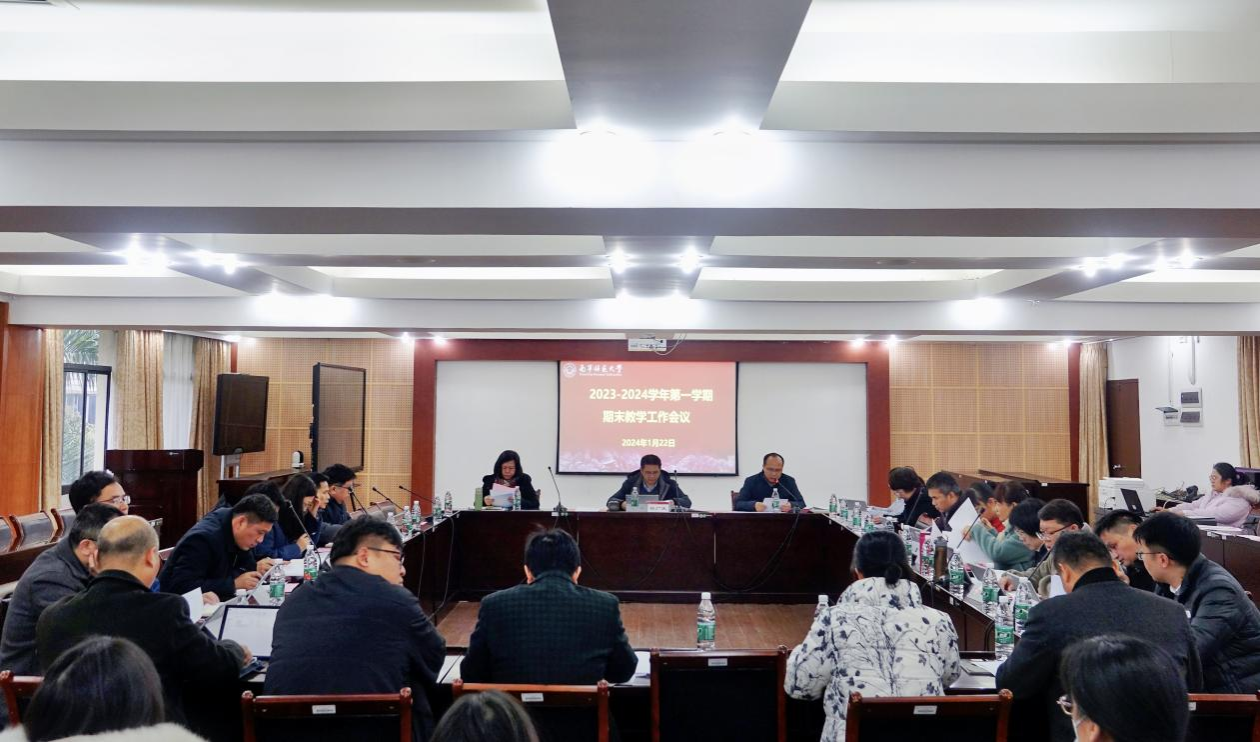 1月22日上午,我校在鸿远楼409会议室召开2023-2024学年第一学期期末教学工作会议,总结2023-2024学年第一学期教学工作,通报各学院本科教育教学审核评估自评进展情况,部署下一阶段审核评估工作以及下学期重要工作。学校党委副书记隆广庆,各学院分管教学副院长及教务处、教育评价与教师发展中心全体人员参加会议。