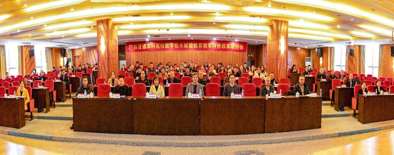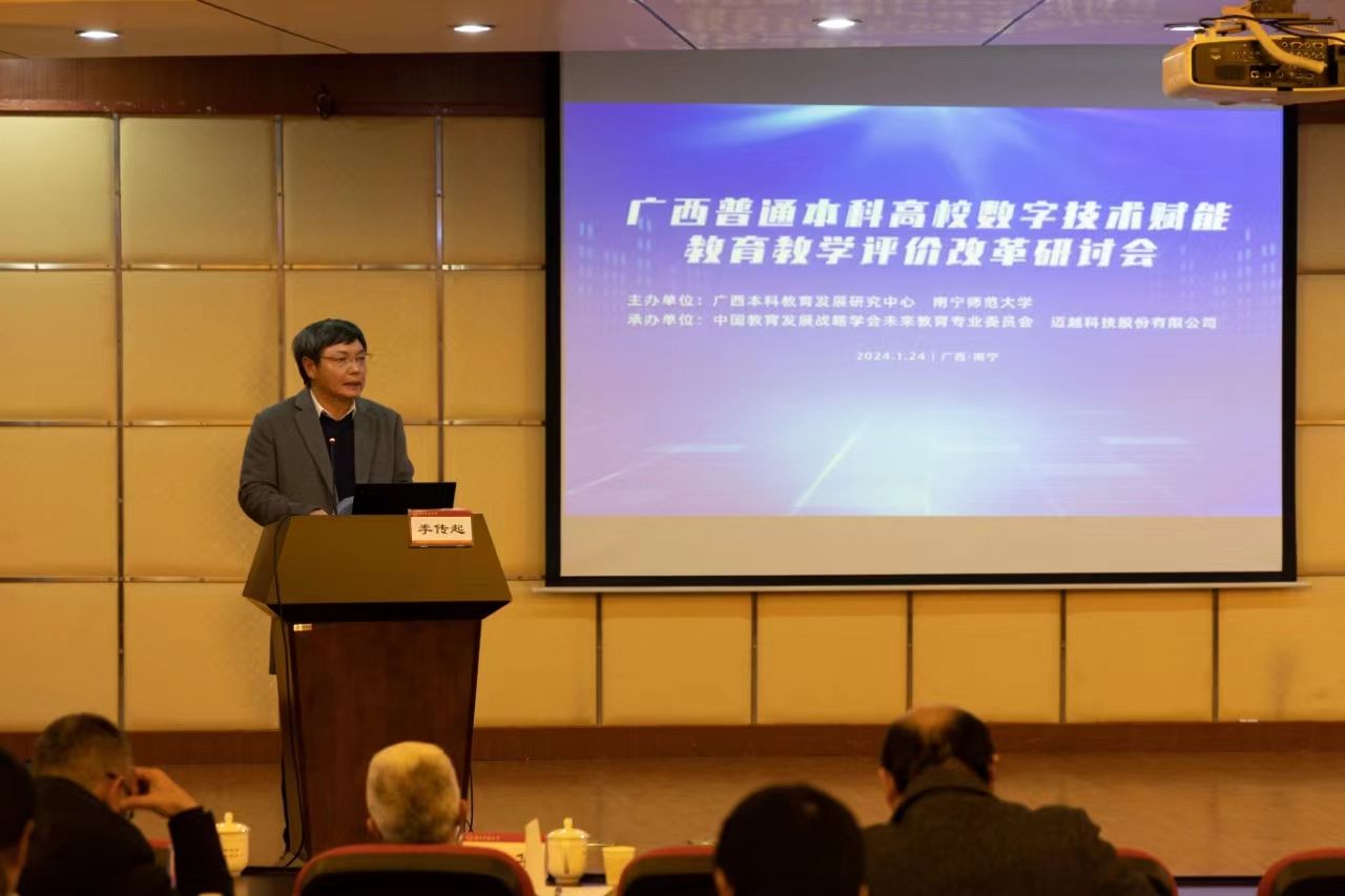 1月24日,由广西本科教育发展研究中心、南宁师范大学主办,中国教育发展战略未来发展专业委员会、迈越科技股份有限公司承办的“广西普通本科高校数字技术赋能教育教学评价改革研讨会”,在我校明秀校区图书馆顺利举行。区内广西大学、广西医科大学、广西民族大学等二十多所本科高校领导及代表出席本次会议。研讨会由广西本科教育发展研究中心副主任、学校党委副书记隆广庆主持。