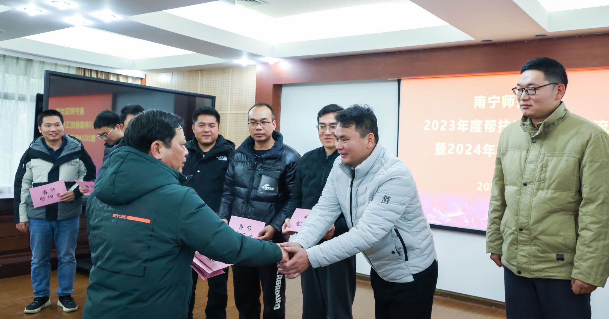 为深入贯彻落实中央和自治区关于巩固拓展脱贫攻坚成果同乡村振兴有效衔接的决策部署,回顾总结学校2023年帮扶工作,研究部署2024年帮扶工作安排,进一步强化共识、集中力量、明确目标,扎实推进学校帮扶工作走深走实,1月26日下午,学校在鸿远楼409会议室召开了2023年帮扶工作交流会暨2024年春节慰问座谈会。学校党委副书记侯代忠,相关职能部门、学院负责人和2023年新派驻村工作队员参加了会议,会议由校党委组织部郑振锋部长主持。