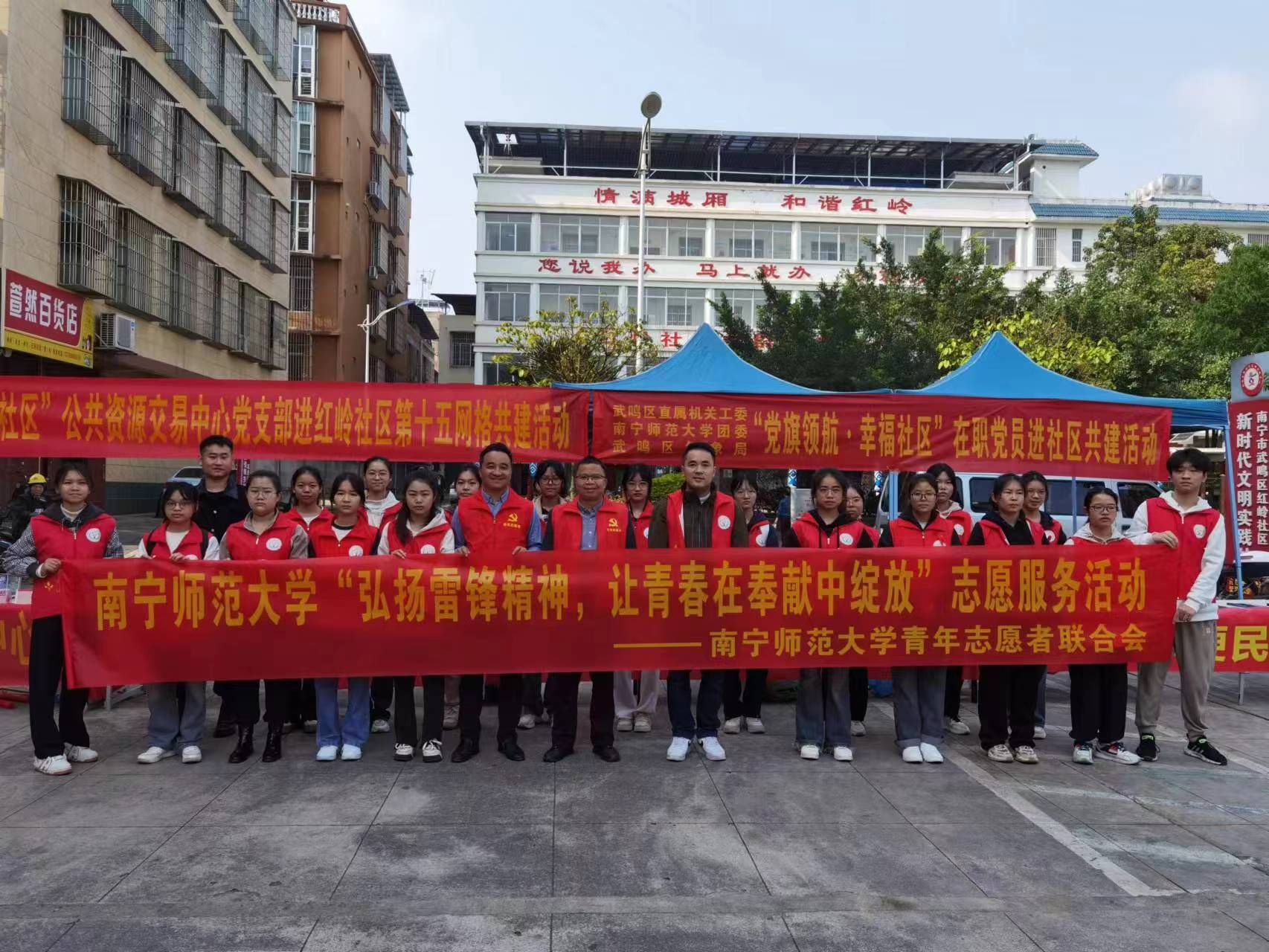 3月5日当天,我校组织开展“志愿服务进社区”活动,在武鸣区红岭社区,校团委联合武鸣区直属机关工委开展了“绿城闪耀志愿红,文明实践学雷锋”活动,遴选了20名大学生志愿者参与其中,协助开展垃圾分类宣传、环境卫生整治等志愿服务;在兴宁区人民中社区,组织了18名大学生志愿者开展了“美丽广西·青春行动”活动,通过清扫朝阳河步行街道、捡拾垃圾、擦拭公共设施等志愿服务,用实际行动为城市增色、为文明添彩。此外,在五合、武鸣校区组织开展了学雷锋打卡活动,如归置教室桌椅板凳、整理共享单车、清理校园垃圾、我为同学办实事等,活动吸引了500余名同学参与,以实际行动让雷锋精神在新时代绽放更加璀璨的光芒。