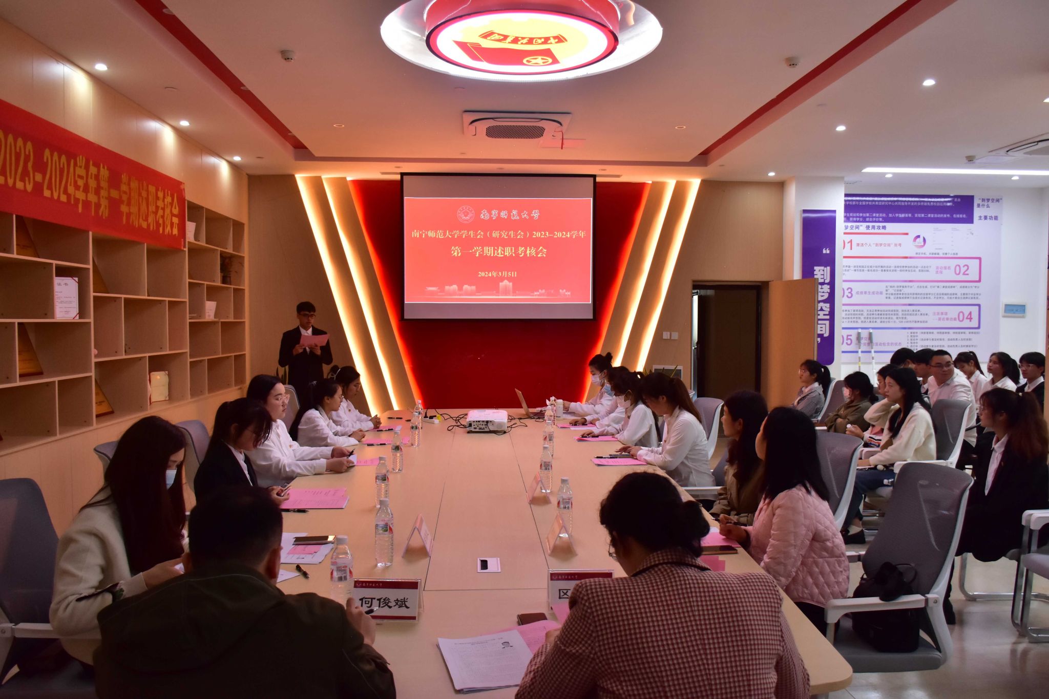 为持续贯彻落实高校学生会组织深化改革,进一步加强学生干部队伍建设,3月5日,我校学生会、研究生会在武鸣校区第二课堂体验中心召开2023-2024学年第一学期述职考核会。校团委负责人,校学生会、研究生会、常代会指导教师和学生组织代表参加了本次述职考核会。
