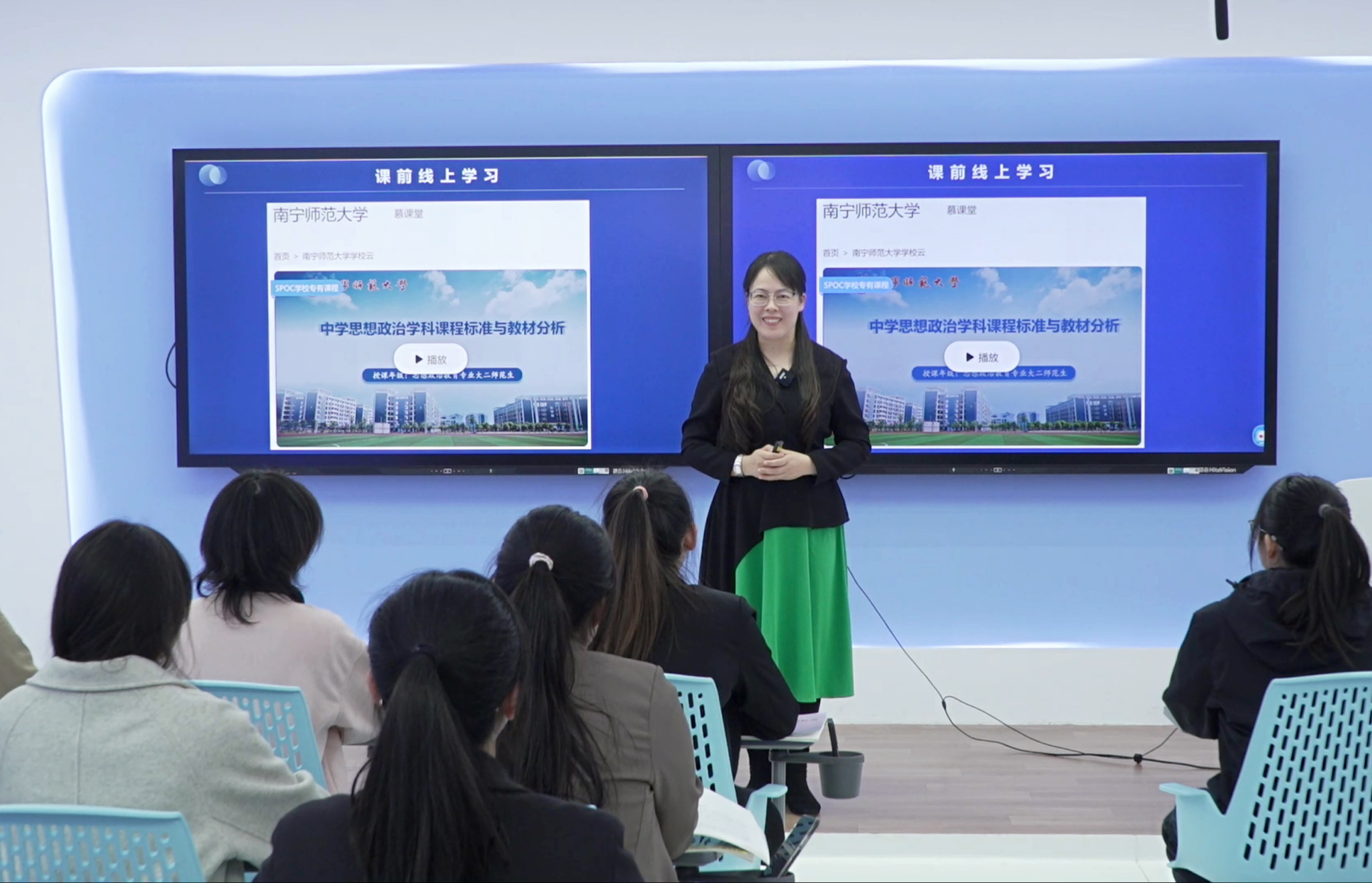 思想政治教育专业本科师范生和学科教学(思政)教育硕士研究生培养属于中小学思政课教师的源头培养,有其重要性和特殊性。温老师致力于中小学思政课教师的源头培养,带领“行走的教研共同体”深入中小学开展思政课教学改革和研究,教学成果荣获国家级教学成果二等奖、自治区基础教育教学成果一等奖,温老师将这些教学成果反哺思想政治教育专业本科师范生和学科教学(思政)教育硕士研究生的教育教学,提高人才培养质量。