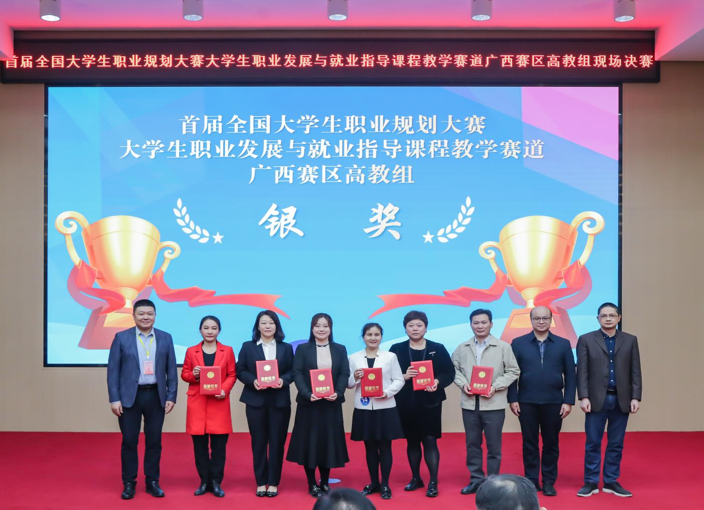 颁发首届全国大学生职业规划大赛大学生职业发展与就业指导课程教学赛道广西赛区高教组银奖证书