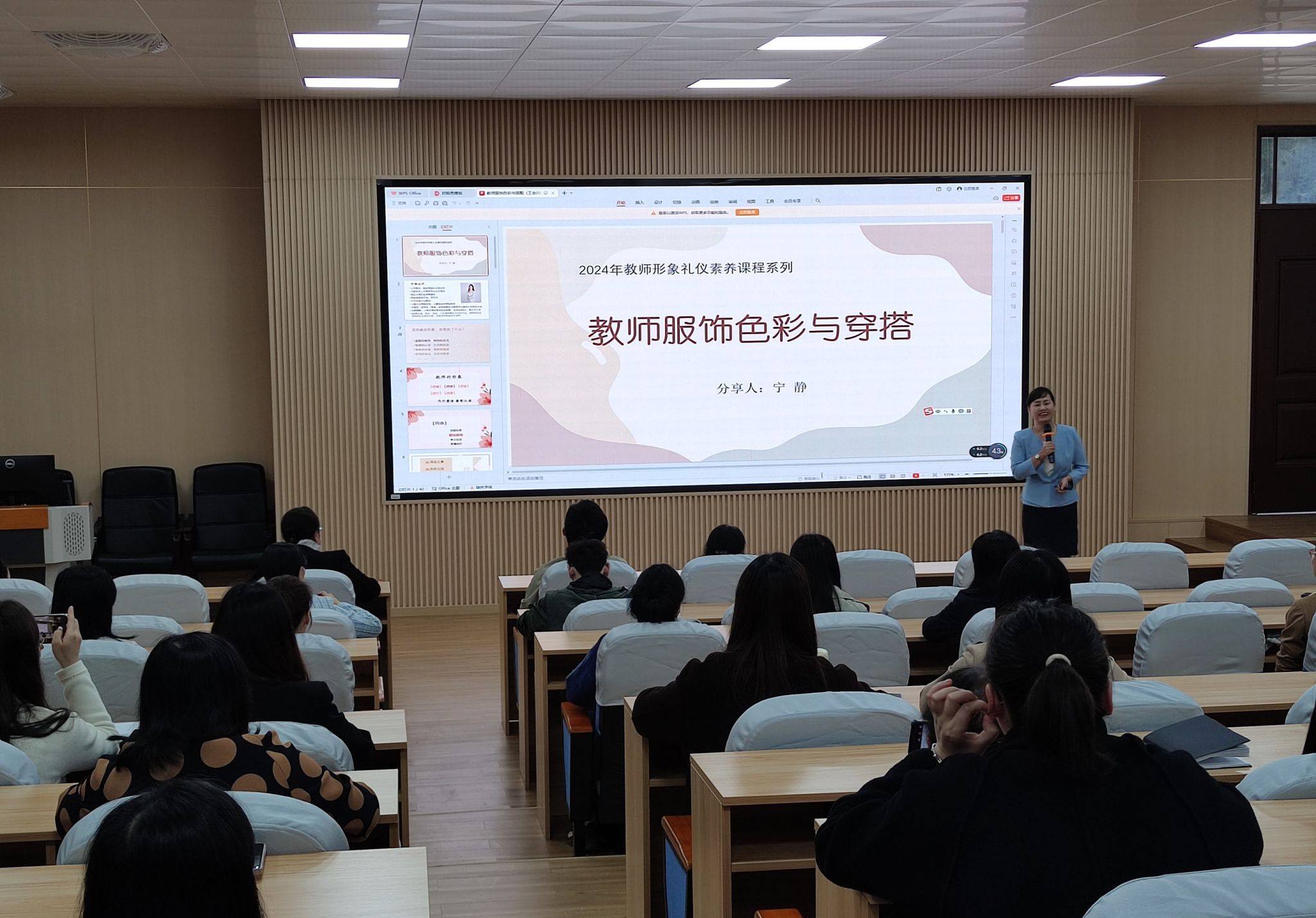 为帮助教职工打造积极向上、优雅得体的良好形象,促进学校文化建设,3月22日下午,校工会特邀形象礼仪培训师——经济与管理学院宁静老师对我校教职工开展教师服饰色彩与搭配培训,来自学校各分工会的五十多名教职工参加了此次活动。