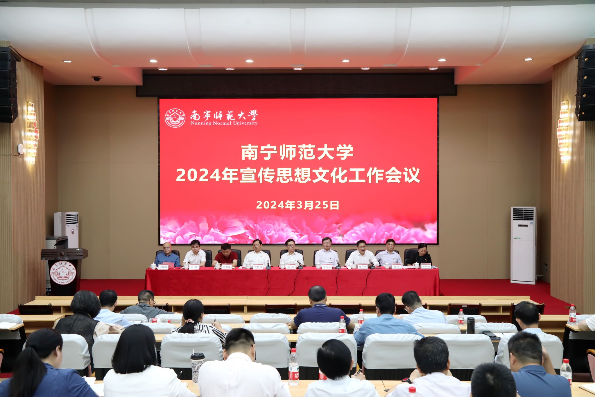 校党委张鹏书记在总结讲话中指出,要坚持守正创新、强化舆论引导,坚持不懈用习近平新时代中国特色社会主义思想凝心铸魂,重点打好“三场战役”。一是打好思想教育“主动战”,引导弘扬主流价值。要深入学习贯彻习近平总书记关于广西工作论述的重要要求,落实好“第一议题”制度,切实将习近平总书记关于教育的重要论述和对高等教育的重要指示转化为学校干事创业的生动实践。二是打好宣传思想“整体战”,巩固壮大主流舆论。要强化信息研判,定期开展意识形态领域安全风险隐患排查,提高舆情分析处置水平。要壮大校园主流思想舆论,严格落实“三审三校”制度,杜绝重大编校差错。要构建高质量思想政治工作体系,持续推进“三全育人”综合改革,完善“五育并举”工作体系。要大力推进思政理论课改革,统筹推进思政课程与课程思政融合发展。三是打好精神文明“持久战”,涵养培塑主流文化。要践行习近平文化思想,加强新时代文明实践站建设。要深化社会主义核心价值观建设,深入实施时代新人铸魂工程。要培育文化作品、文化项目,丰富文化环境、文化氛围,以全面多元的校园文化促进学生全面发展。张鹏书记强调,各单位要履行主体责任,完善工作机制,为学校高质量发展汇聚强大合力。
