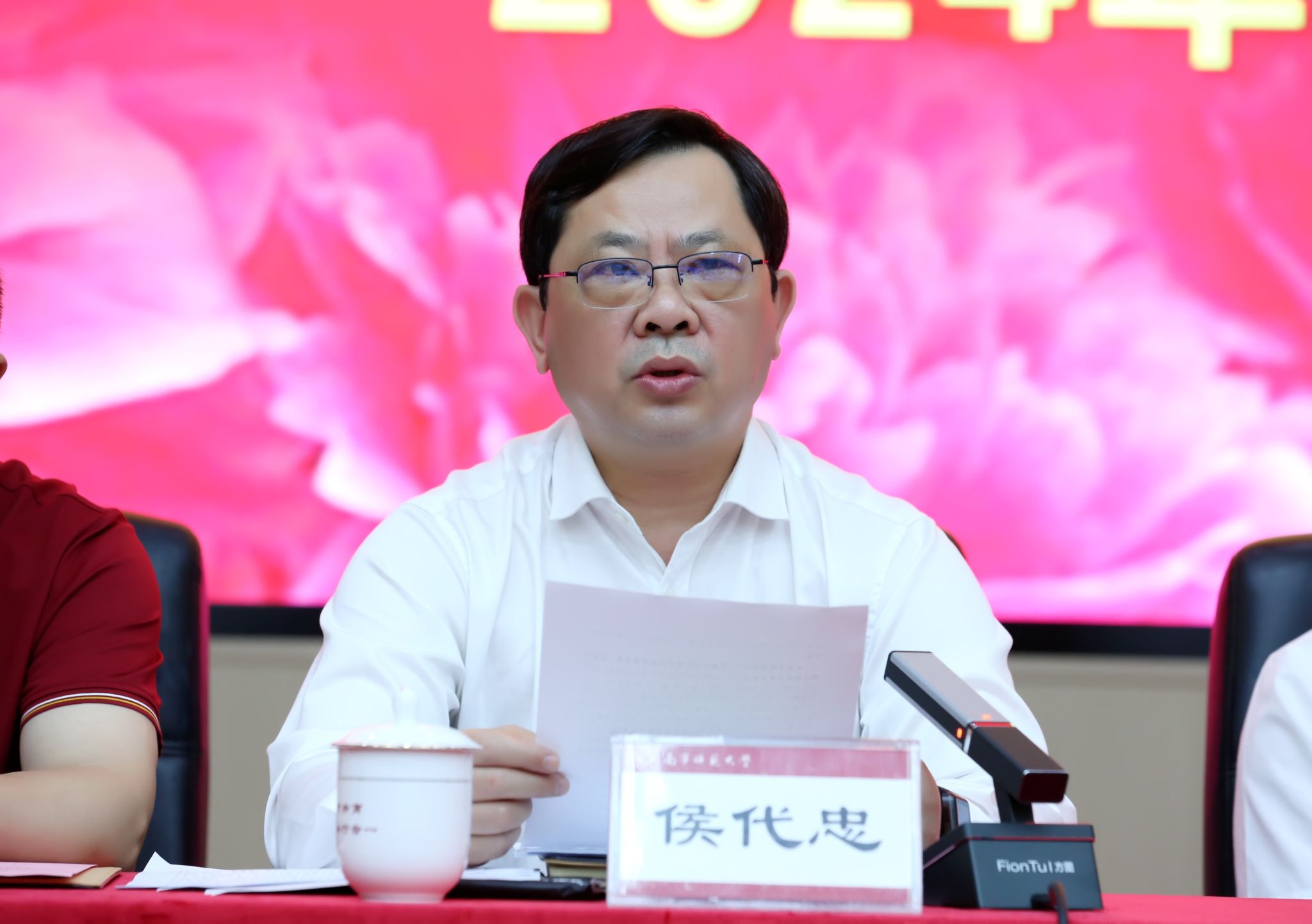 校党委副书记侯代忠作2024年学校统战工作报告。报告总结了2023年学校统一战线工作取得的成绩:一是强化思想政治引领。二是积极开展联谊交友活动。三是加强党外人士队伍建设。四是抓好民族宗教专项工作。五是抓好港澳台侨及海外统战工作。六是开展统战理论政策研究。七是助力经济社会高质量发展。报告强调,全校统战工作要加强统筹,铆足干劲,全力推动全年各项工作任务圆满完成:一是坚持不懈深化党的理论武装。要发挥理论宣教阵地作用,完善“统战部牵头+科研及教学部门协调+研究人才参与”工作模式,开展系列品牌主题活动。二是大力推进民族团结进步教育。要发挥学科优势打造特色亮点,加强国家通用语言文字推广普及,持续推进“广西三月三”等节庆活动,构建铸牢中华民族共同体意识大宣教格局。 三是扎实做好宗教工作。深入开展抵御和防范校园传教渗透工作,抓好校内涉及宗教风险因素的梳理排查,定期开展分析研判和对策研究。四是加强党外人士队伍建设。加强民主党派基层组织建设,加大对民主党派、无党派代表人士的培养锻炼,加强党外知识分子联谊会建设,提高无党派代表人士履职能力和水平。五是扎实做好港澳台侨及海外统战工作。要做好品牌交流项目相关工作,发挥好台籍教师代表人士作用,积极搭建交流平台。