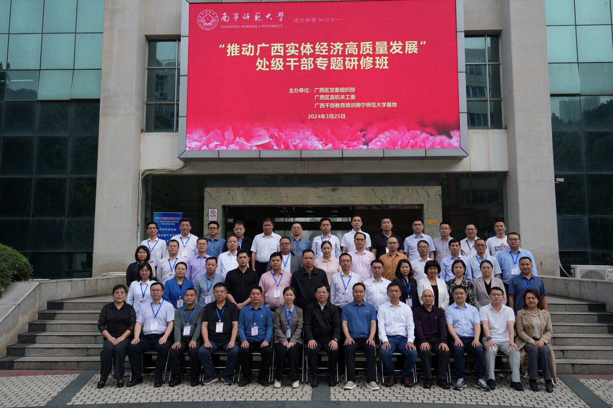 3月24日—29日,自治区党委组织部2024年度首期处级干部专题研修班在广西干部教育培训南宁师范大学基地成功举办。本期研修班由自治区党委组织部、自治区直属机关工委和南宁师范大学联合举办,研修主题是“推动广西实体经济高质量发展”,来自设区市和区直单位的47名处级干部参加。