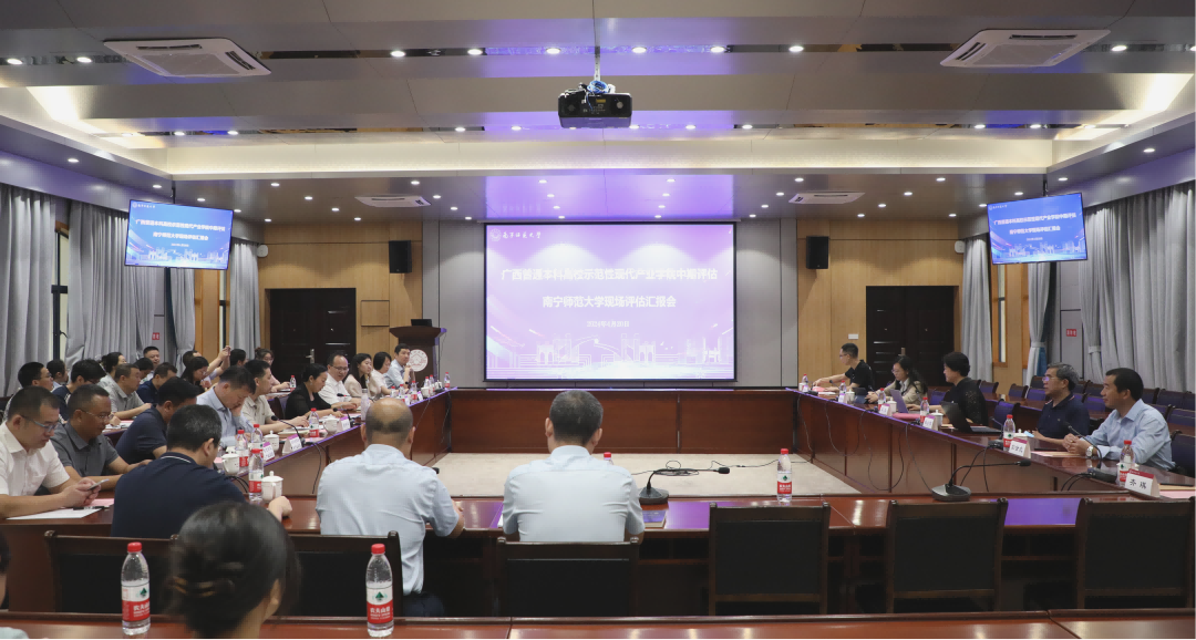4月20日,广西普通本科高校示范性现代产业学院中期评估专家组第一组组长、桂林理工大学原副校长王玫等一行6位专家莅临我校开展现场评估工作。中期检查汇报会在我校武鸣校区行政楼北127会议室召开,学校副校长龙妮娜,教务处、财务处负责人,示范性现代产业学院相关负责人、师生代表及各共建企业代表参加汇报会。