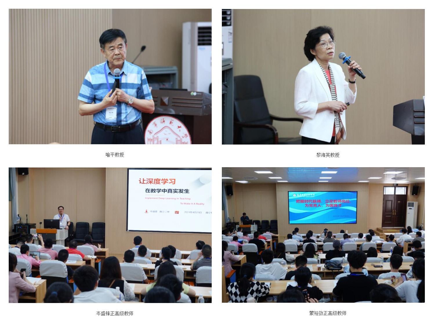 本次基础教育论坛邀请了众多专家学者作报告。其中,喻平教授作了题为《发展学生核心素养:数学教育的共同追求》的报告,王长平教授作了题为《基础教育拔尖人才培养研究与实践》的报告,王光明教授作了题为《父母数学教育期望、子女数学学业信念与数学学业成就间的关系:系列研究》的报告,黎海英教授作了题为《教育教学论文的写作与投稿》的报告,南宁二中副校长、正高级教师岑盛锋作了题为《让深度学习在课堂中真实发生》的报告,南宁十四中副校长、正高级教师蒙裕劲作了题为《把握脉搏,立足岗位,为党育人,为国育才——谈学科核心素养如何在课堂教学中落地》的报告,来宾市政和小学正高级教师韦华芳作了题为《小学数学核心素养与数学思想方法的培养》的报告,柳州高级中学视导室主任、正高级教师吴佐慧作了题为《高中数学拔尖创新人才培养的实践研究》的报告,南宁市第三中学高级教师梁竹作了题为《“三新”背景下高中新授课课堂练习的实践研究》的报告,南宁二十六中副校长、高级教师江妙浩作了题为《学科素养下的高中数学学科育人的研究》的报告,深圳外国语学校袁智斌教授作了题为《高数体验性阅读促进教师感悟教学要领的案例研究》报告。报告内容围绕师范生应具备的专业素养和教学能力,针对数学专业本科师范生培养目标定位的准确性和科学性、专业课程设置的合理性、教学实践环节实施的有效性等方面开展,报告内容契合当下基础教育发展实际,获得参会人员的高度评价。