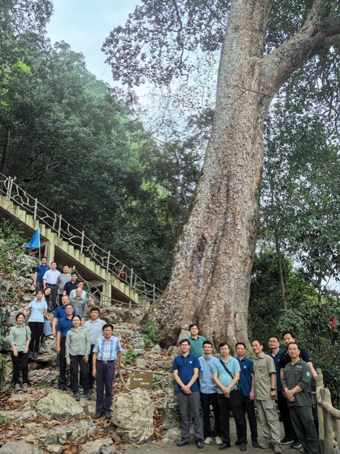 考察蚬木王(2300年树龄,胸径3米,周长10米)
