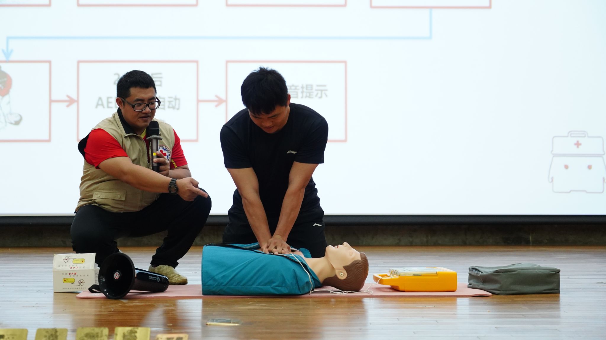 培训现场,沙部·鲁比给同学们讲解了开展急救的意义,他表示心肺复苏是一项最基本的急救技能,重点讲解了“学会和掌握心肺复苏以及把握黄金四分钟抢救期”。沙部·鲁比还通过视频深入讲解心源性猝死的生物原理,给同学们现场展示如何进行心肺复苏和使用AED设备进行心脏除颤。在技能操作环节,沙部·鲁比邀请同学进行现场模拟技能操作,并在旁边细心指导,让同学们充分认识到了学习心肺复苏术的重要性,并初步掌握了如何判断被救助者是否需要心肺复苏,如何进行胸外心脏按压、人工呼吸、AED使用,了解了急救过程中需要注意的问题和应当避免出现的错误。