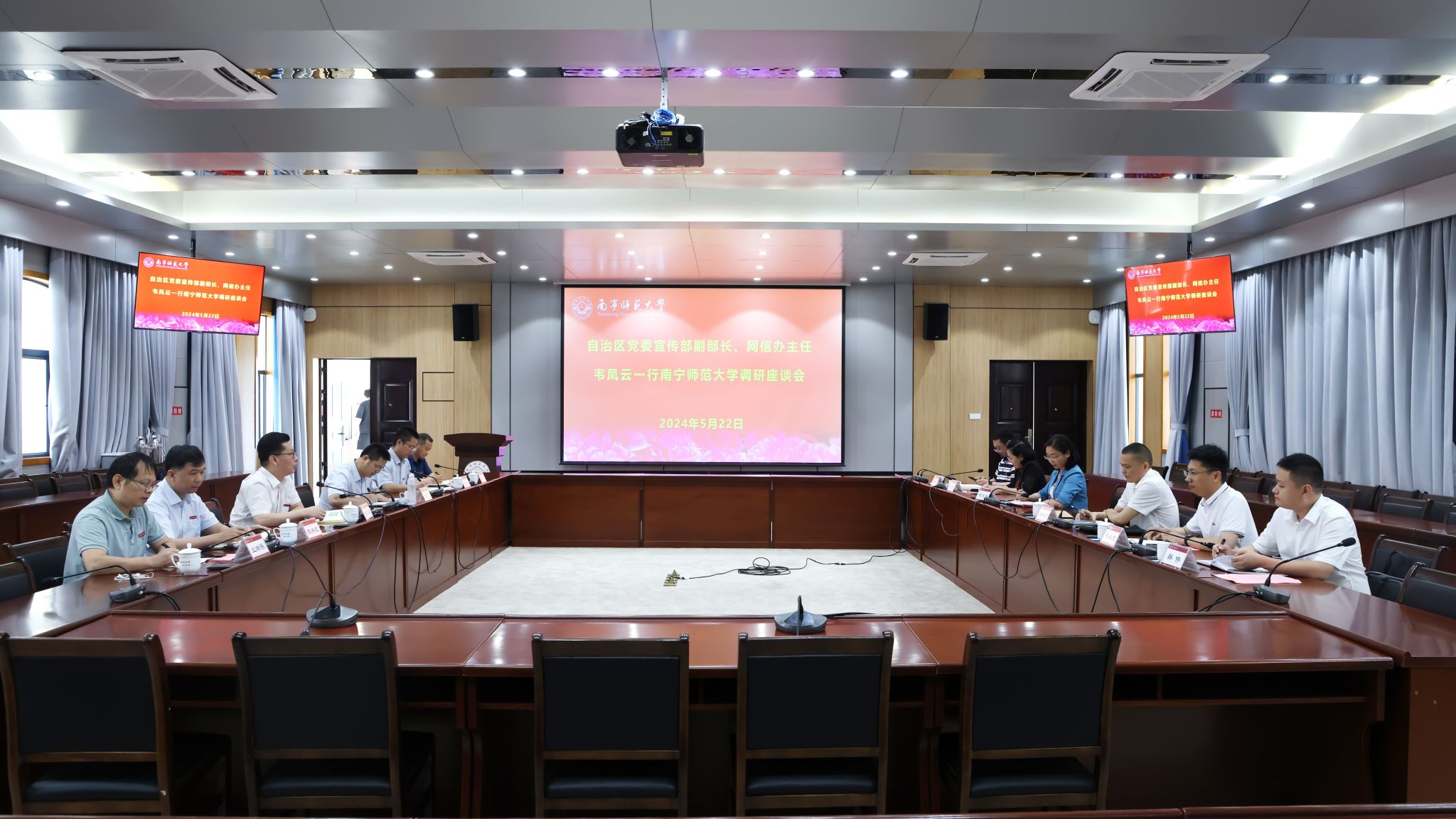 5月22日下午,自治区党委宣传部副部长、网信办主任韦凤云率调研组到我校武鸣校区开展工作调研。国家互联网应急中心广西分中心主任、自治区党委网信办副主任唐林军,自治区党委网信办、国家互联网应急中心广西分中心、广西网络安全和信息化联合会、广西互联网舆情中心等部门负责人随同调研。学校党委书记张鹏、党委副书记隆广庆,党办校办、宣传部、网络安全与信息化中心等部门负责人参加调研。调研座谈会由张鹏书记主持。