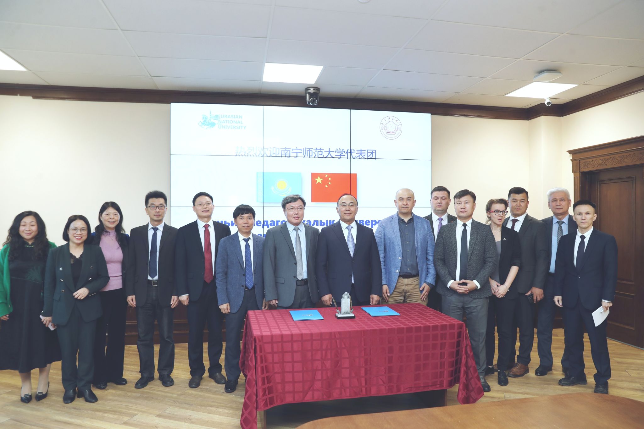 代表团与欧亚国立大学校领导及部分处长、院长合影