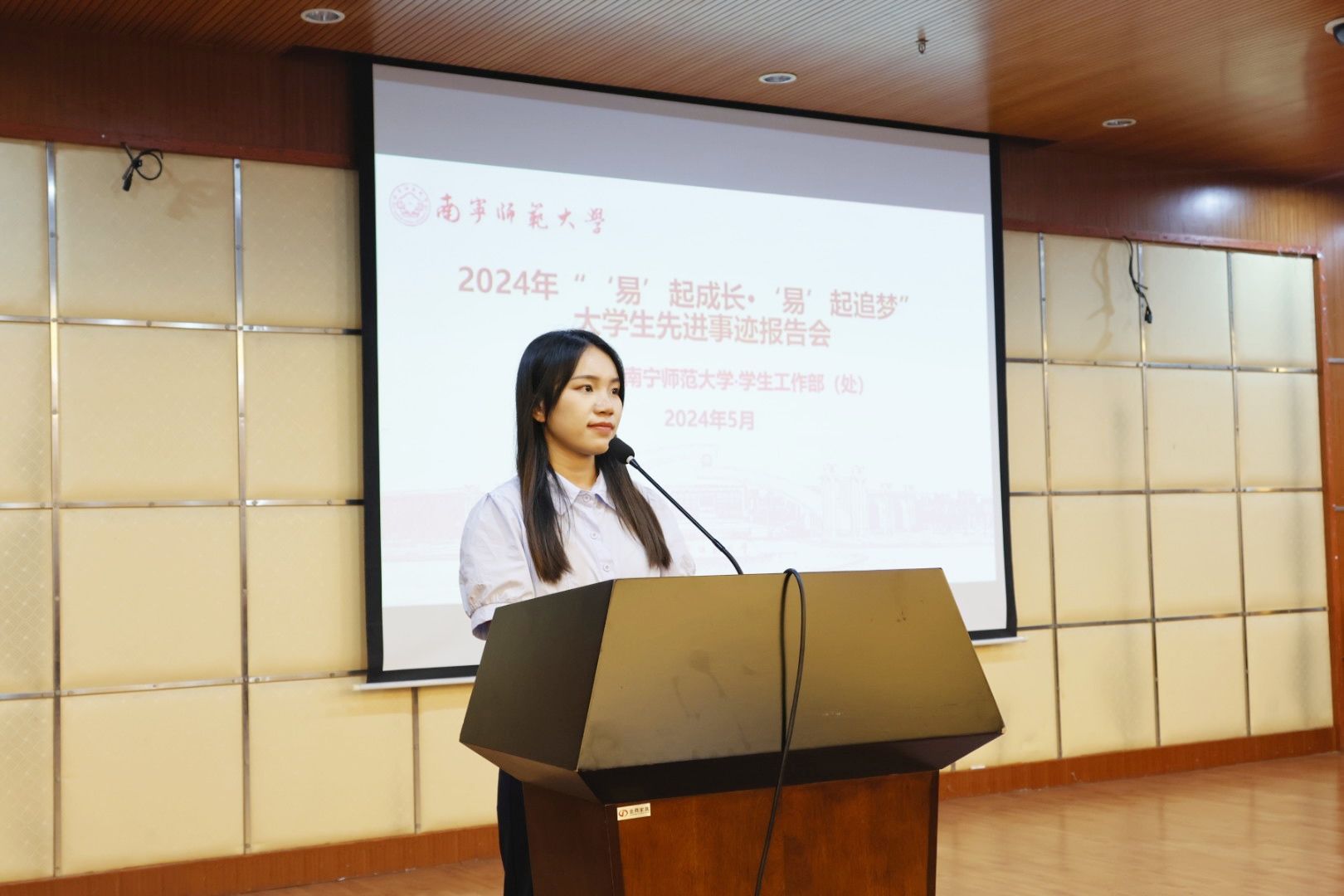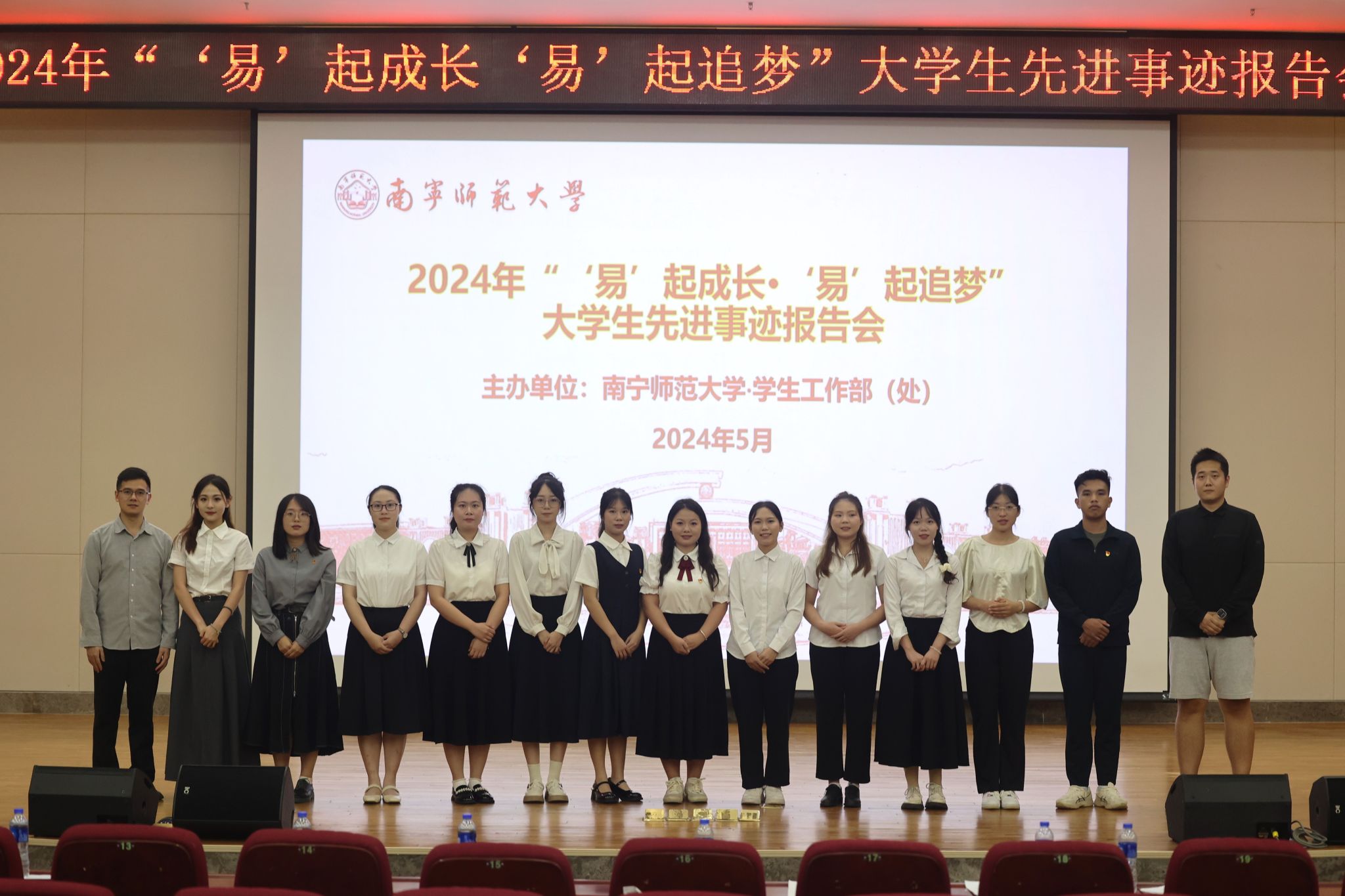 为深入学习贯彻党的二十大精神,展现我校优秀学子志存高远、拼搏进取的青春风采,充分发挥榜样示范作用,引导在校大学生与新时代同向同行,为实现个人理想和中国梦而努力学习,5月28日、5月30日,我校分别在明秀校区图书馆报告厅、五合校区五综308教室、武鸣校区图书馆报告厅举办了2024年“‘易’起成长·‘易’起追梦”大学生先进事迹报告会。本次报告会共组织了25名优秀学生报告团成员在会上作了先进事迹分享。全校900余名学生代表到场聆听。