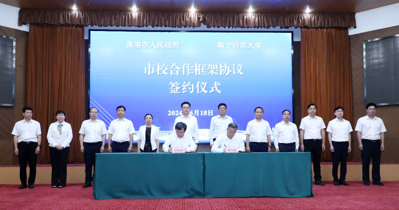 6月18日下午,我校与贵港市在贵港市会议中心签订市校合作框架协议。我校党委书记张鹏、贵港市委书记朱会东见证签约。我校校长李传起、贵港市委副书记、市长林海波,代表双方签约。我校副校长龙妮娜及党委办公室/校长办公室、教务处、科研管理处、研究生院、招就处/校友办、教师教育学院、马克思主义学院、计算机与信息工程学院、物流管理与工程学院、旅游与文化学院等部门负责人,贵港市委常委、秘书长何文凭,副市长周仕志及教育局、工信局、文化广电体育旅游局等部门负责人参加了活动。