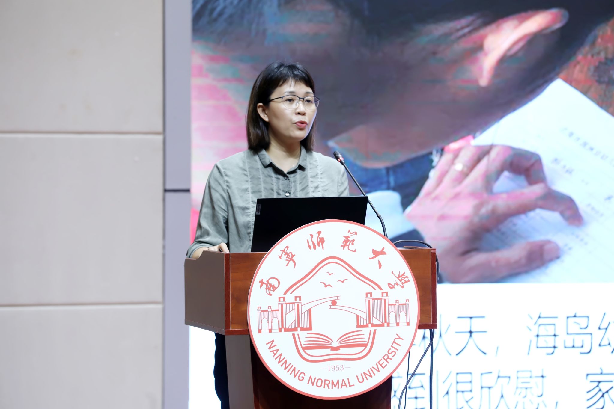 南宁师范大学、广西民族大学、广西艺术学院、广西职业师范学院、广西外国语学院、广西体育高等专科学校、广西幼儿师范高等专科学校、南宁职业技术学院、广西工业职业技术学院等9所驻邕高校教师和师范生代表,南宁市中小学(含幼儿园、中等职业学校)校长和教师代表共400余人聆听了报告会。
