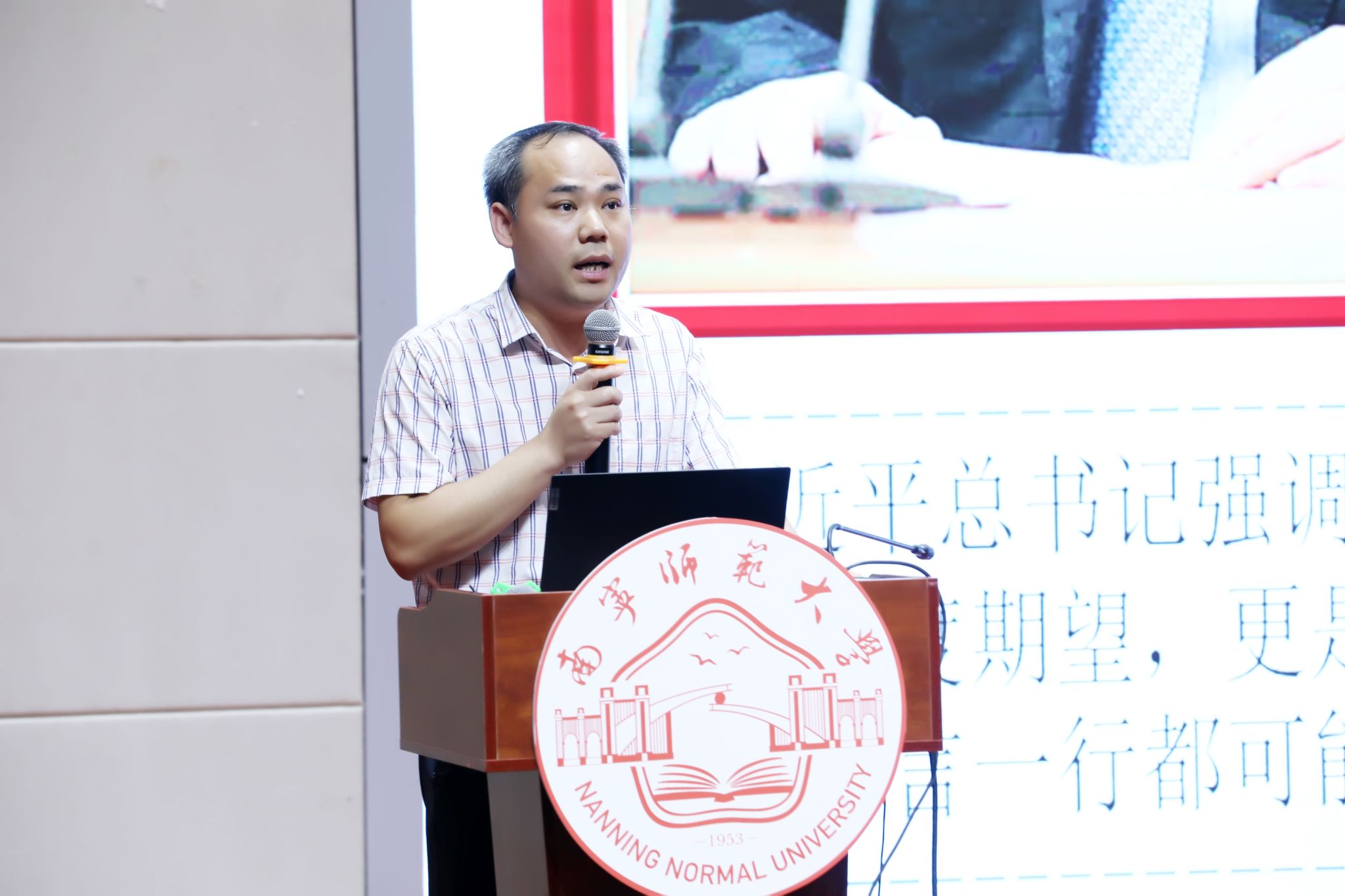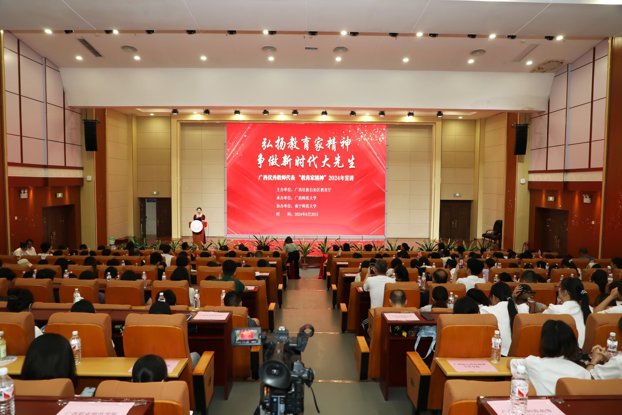 为深入学习贯彻习近平总书记关于教育的重要论述,大力弘扬教育家精神,引导广大教师深刻认识在教育强国、科技强国、人才强国建设中肩负的光荣使命与重大责任,引导广大师范生自觉树立教师职业理想,6月20日,由自治区教育厅主办、广西师范大学协办、我校承办的广西优秀教师代表“教育家精神”2024年巡回宣讲报告会在我校五合校区举行。我校赵伟副校长参加报告会并致辞。