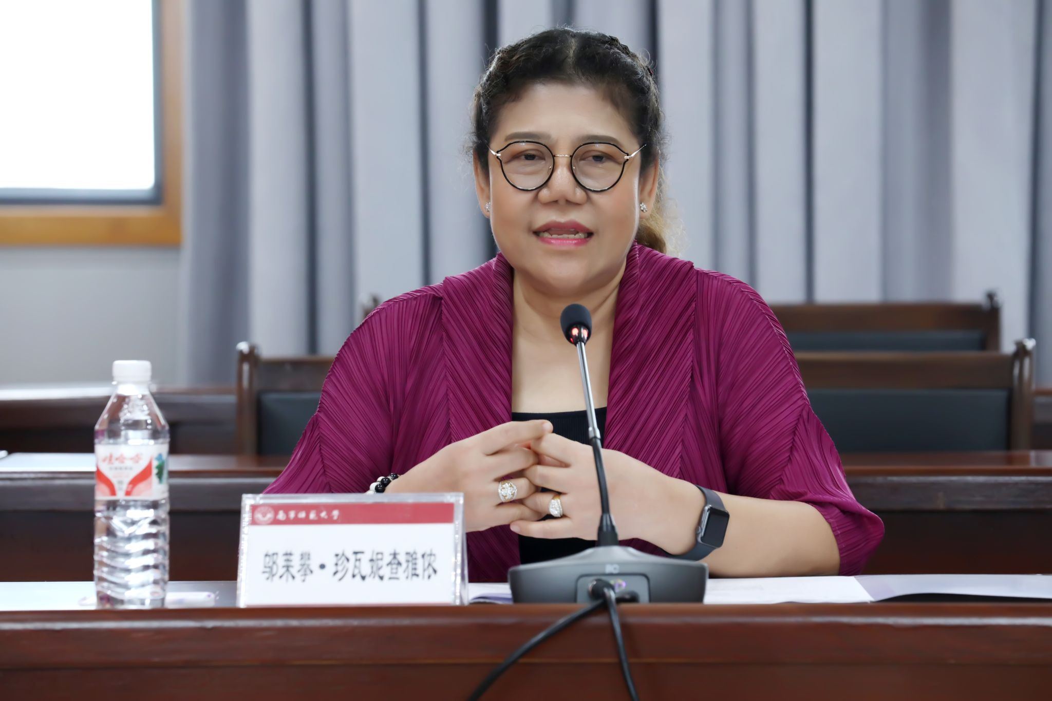 泰国华侨崇圣大学Uraipan Janvanichyanont校长对学校的热情接待表示感谢,介绍了华侨崇圣大学近年来发展情况及国际化办学优势和特色,表达了深化良好教育合作关系,实现合作共赢的愿景。