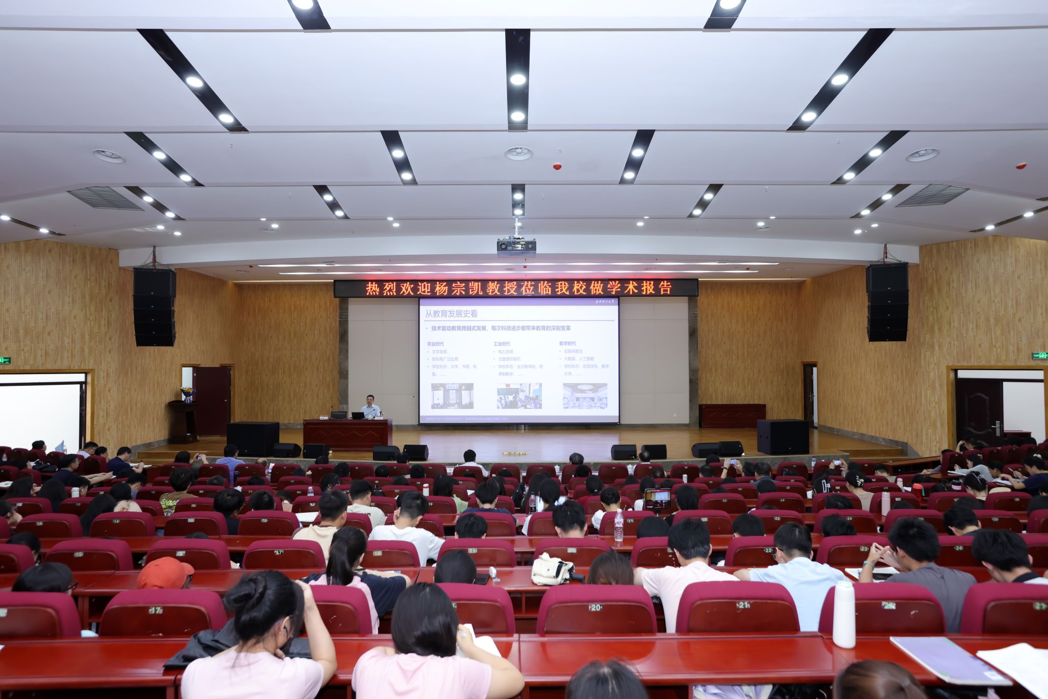 为进一步推动教育教学改革,提升高质量发展动能,6月28日,我校邀请武汉理工大学校长杨宗凯教授在武鸣校区图书馆报告厅作《教育数字化推动高校教育创新》专题讲座。校长李传起、副校长肖琦出席讲座,党办校办、教务处、研究生院、科研管理处等职能部门负责人及武鸣校区相关学院师生代表参加讲座。