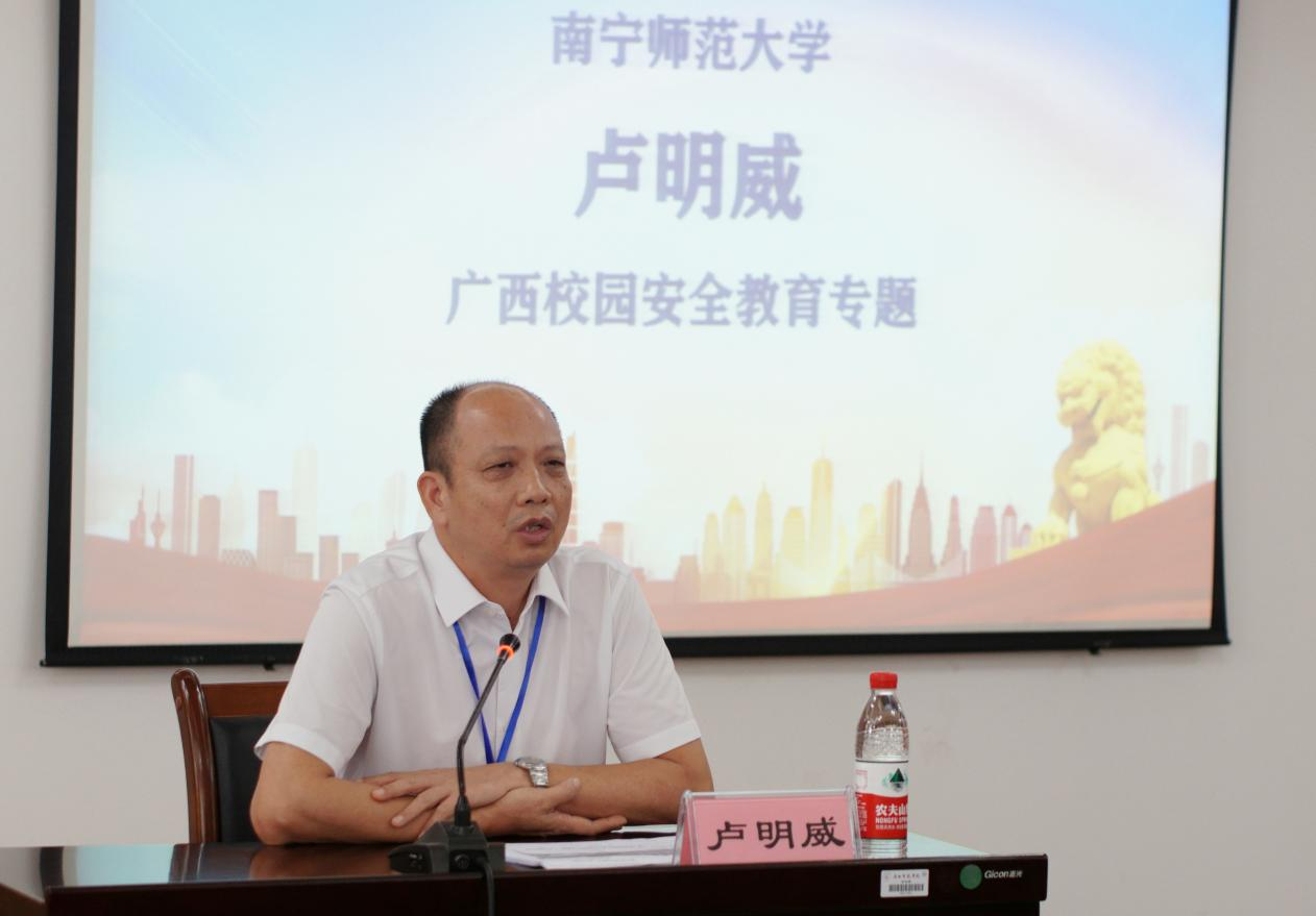 专题报告四:“广西校园安全教育专题”,由南宁师范大学法学与社会学院副院长卢明威教授主讲。