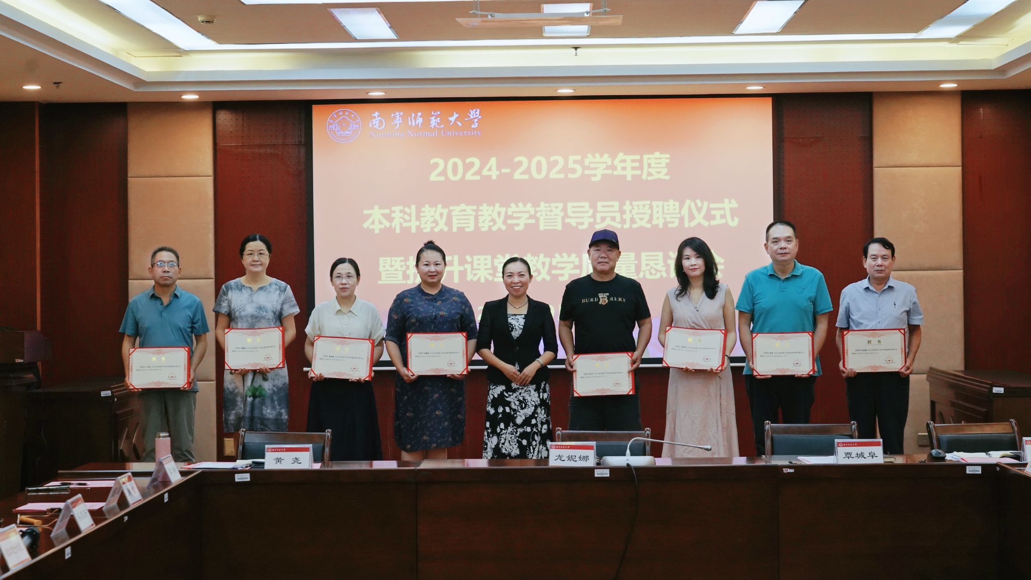 会上,龙妮娜代表学校向学校第六届(2024-2025学年度)本科教育教学督导员颁发了聘书。