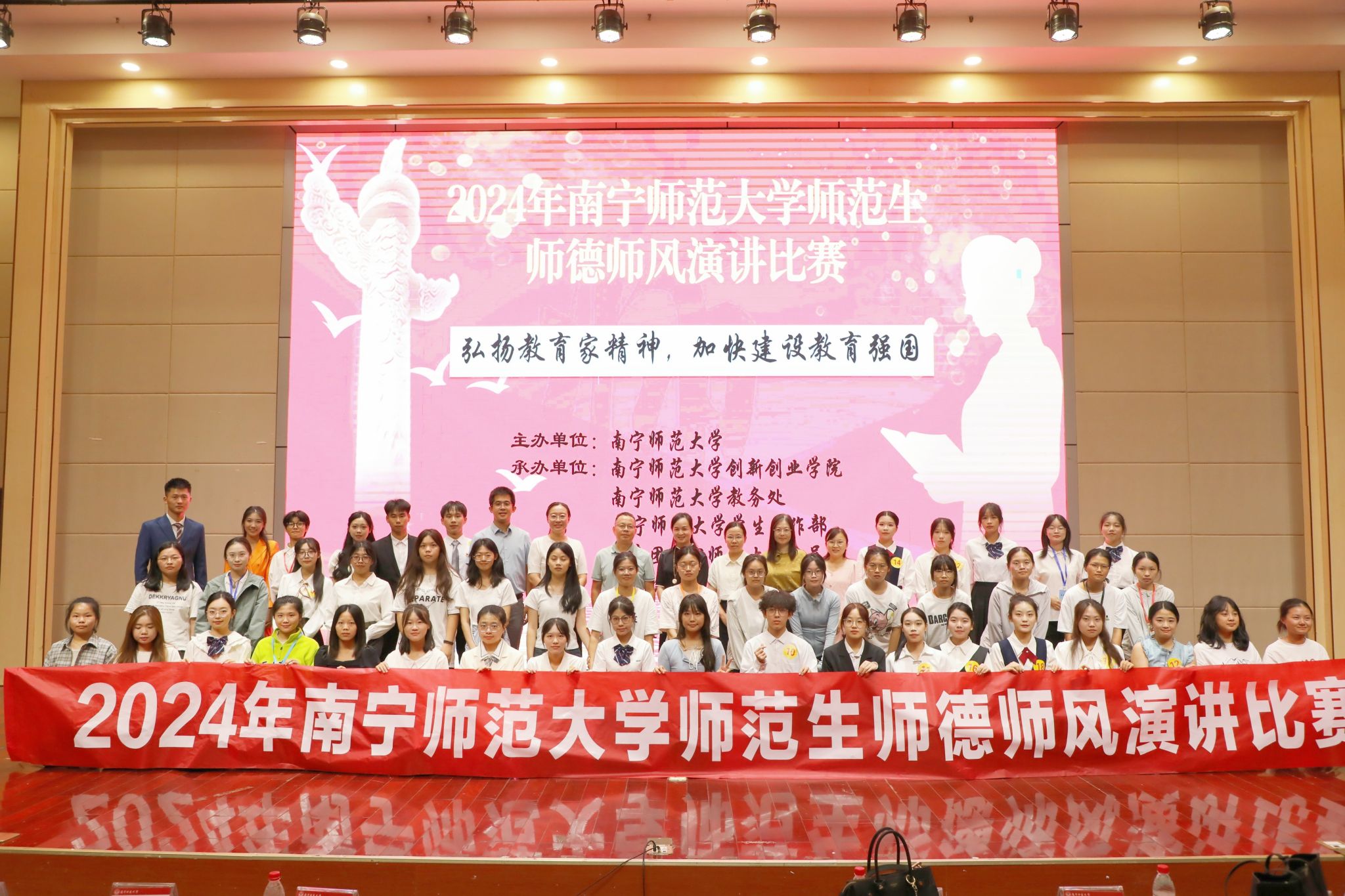 学校将以师范生师德师风演讲比赛为契机,深入弘扬教育家精神,引导广大师范生秉承“学高为师,身正为范”的精神,坚定心有大我、至诚报国的理想信念,以高尚的师德、精湛的技艺、深厚的爱心,共同为建设教育强国贡献青春和智慧。