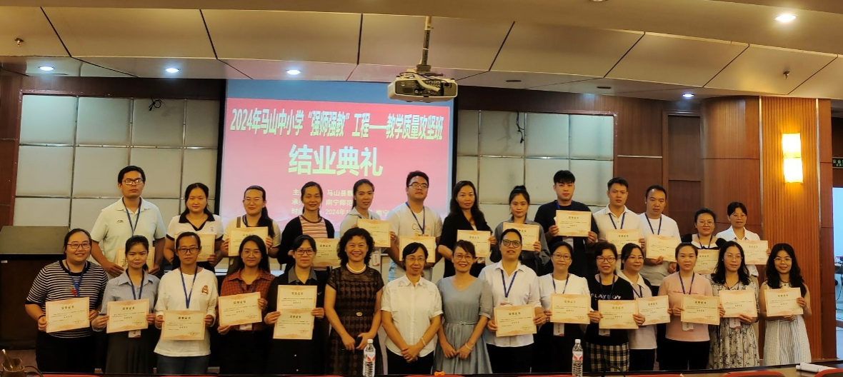 10月14日,由我校承办的马山县2024年马山中小学“强师强教”工程——教学质量攻坚培训班在广西南宁圆满落下帷幕。培训由10月9日始,历时6天,来自马山县的70名培训团队教师参加了此次培训。
