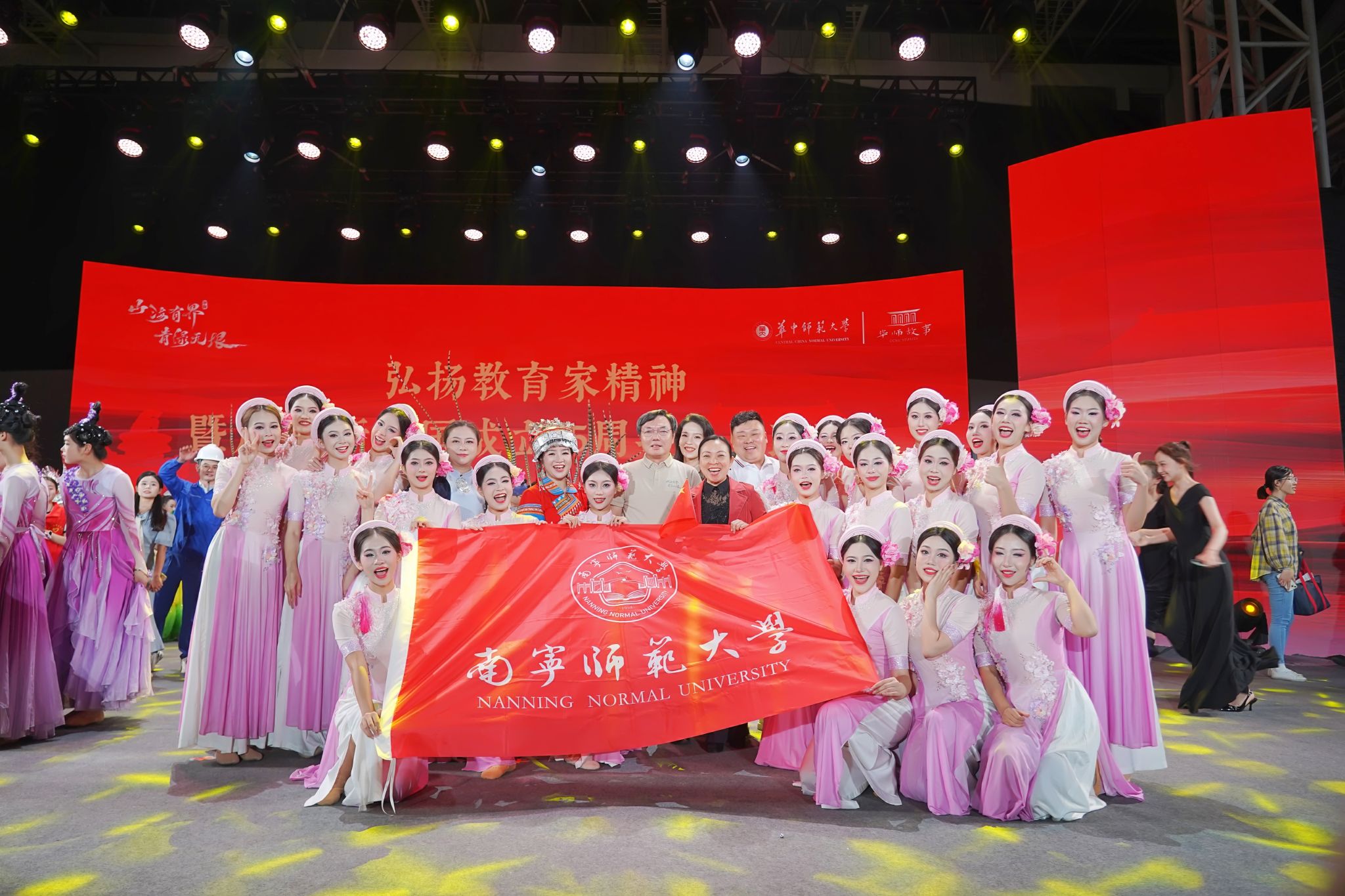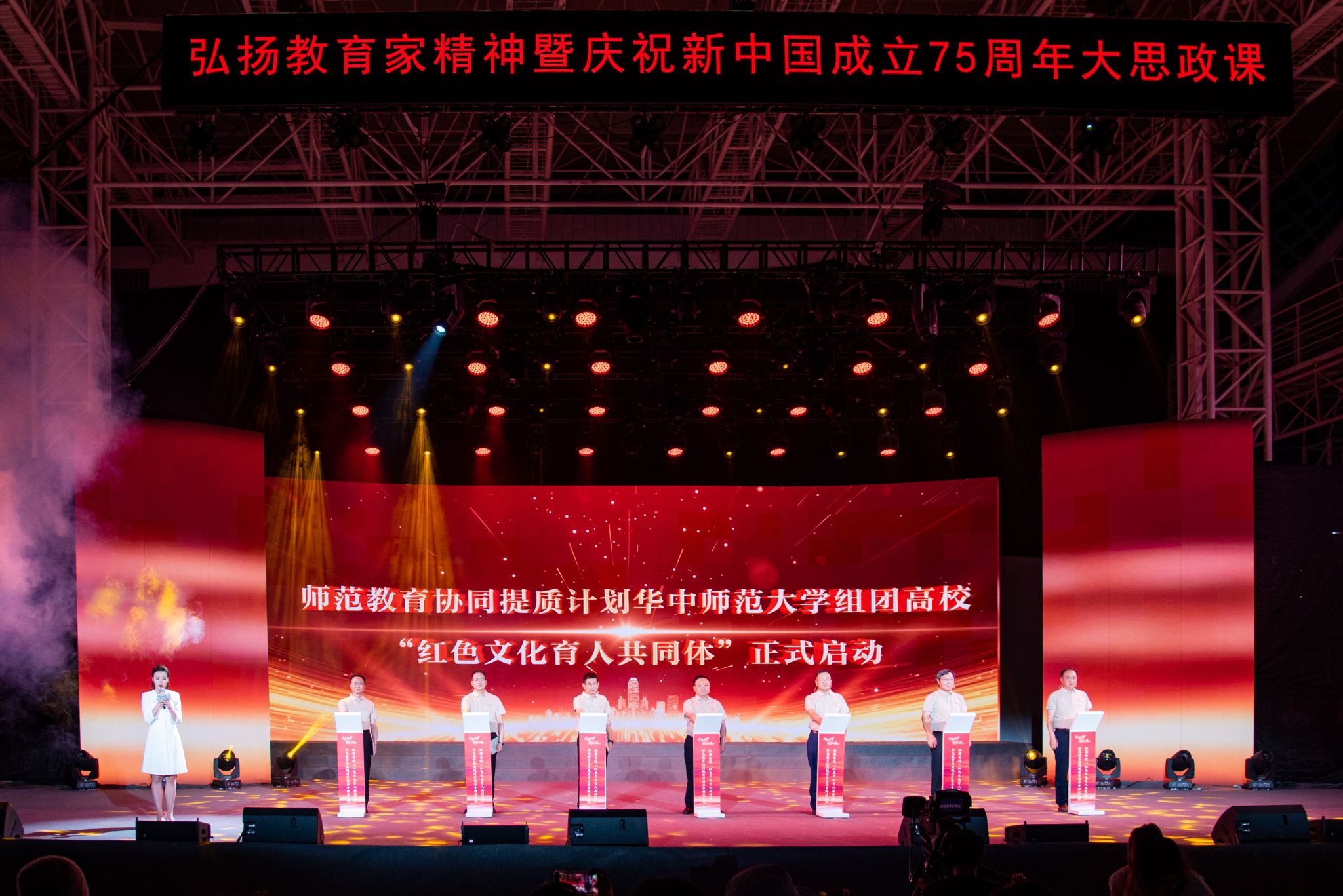 此外,李校长还参加了在华中师范大学举行的“山海有界,青绿无垠——弘扬教育家精神暨庆祝新中国成立75周年”大思政课活动,并与组团其他六所高校主要负责人共同讲述了《教育强国,师范有为》,共同启动了师范教育协同提质计划华中师范大学组团高校“红色文化育人共同体”。我校音乐与舞蹈学院20多名师生代表参演了《山海之约》《我们的故事》《对花屐》《我和我的祖国》等节目。