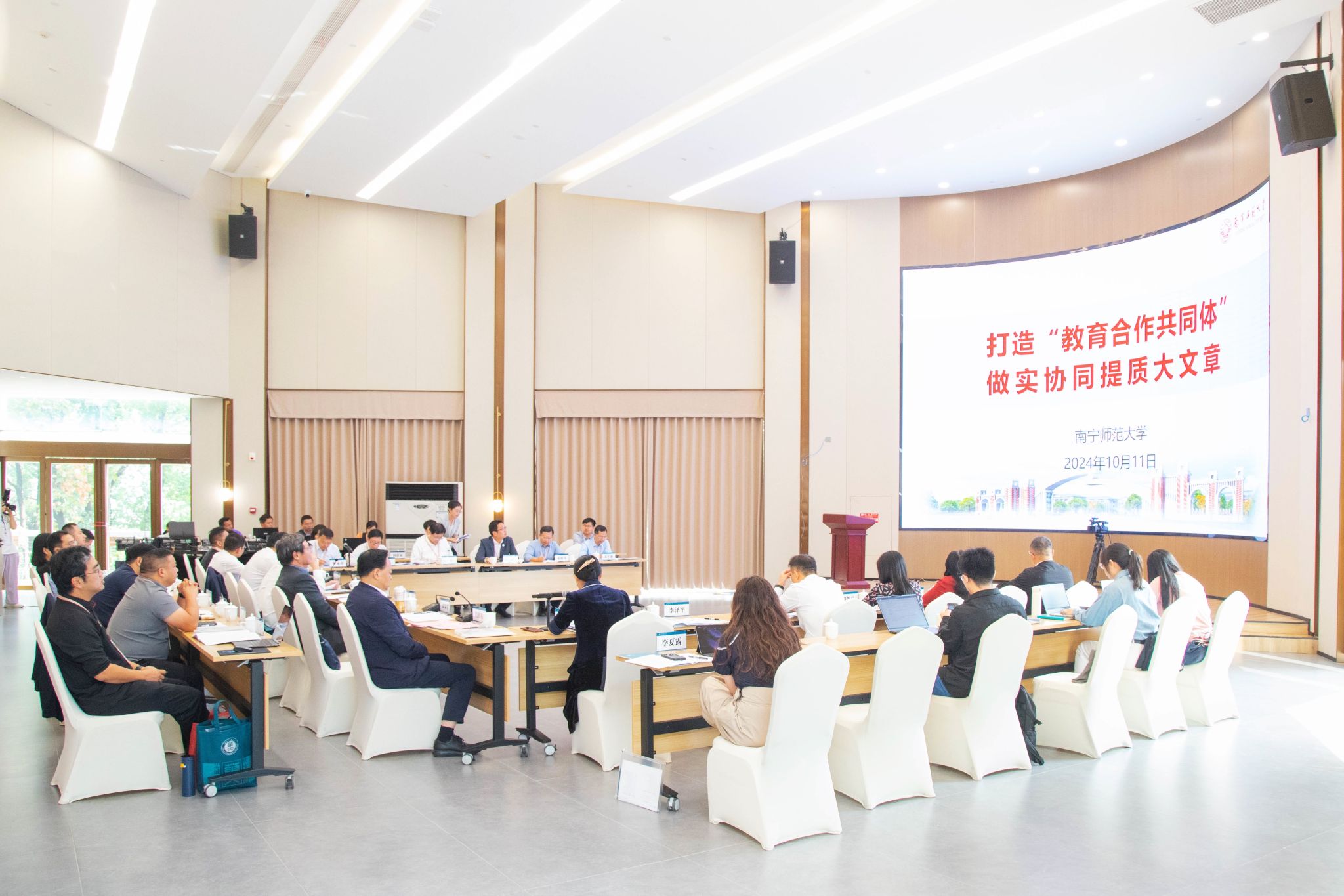 我校龙妮娜副校长代表我校作本年度工作推进情况的汇报。她指出:2024年,我校站在服务教育强国建设的战略高度,高标准谋划推进组团工作,建立“行政+业务”双轮驱动协同工作机制,以强化校际联动、加强校内驱动、增强业务部门校内外互动,扎实推动各项帮扶任务落实落地。我校充分发挥教师教育办学特色,聚焦“学科专业建设”“骨干教师培养”“提高人才培养质量”等,着力打好“协同”“培优”“提质”一套组合拳。下一步,我校将继续牢牢把握师范教育核心,以协同提质计划为主要抓手,增强“协同”之力,释放“融合”之效,提升“发展”之势,继续全力支持和配合华中师范大学作为牵头高校的各项工作,在总结经验与调研实践的基础上积极探索更宽领域、更深层次、更高质量的协作模式,强化协力发展、互相成就的有效协同联动机制,凝练师范院校协同发展范式,与组团内兄弟院校一道积极推动教育部师范教育协同提质计划各项任务落实落地,为建设教育强国、推进中国式现代化贡献智慧和力量。