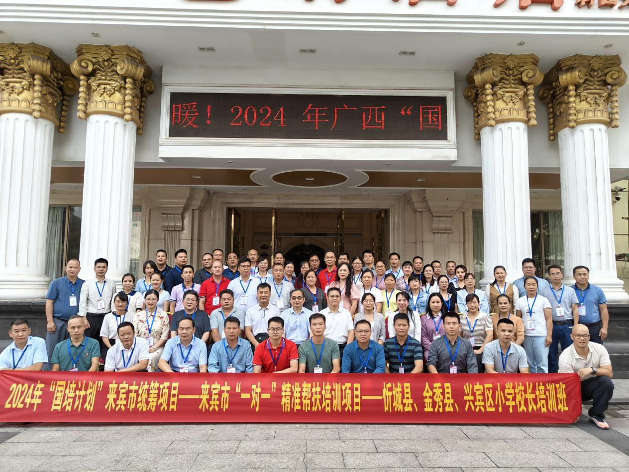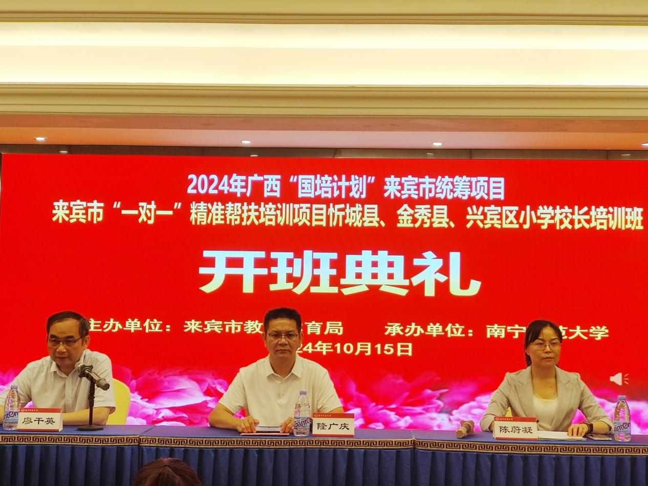 10月15日,由南宁师范大学承办的2024年“国培计划”来宾市统筹——来宾市“一对一”精准帮扶培训项目——忻城县、金秀县、兴宾区小学校长培训班在南宁顺利开班。学校委副书记隆广庆教授、来宾市教育体育局教师培训中心廖干英主任出席了开班典礼。来自来宾市忻城县、金秀县、兴宾区的66位小学校长、副校长参加了此次培训。