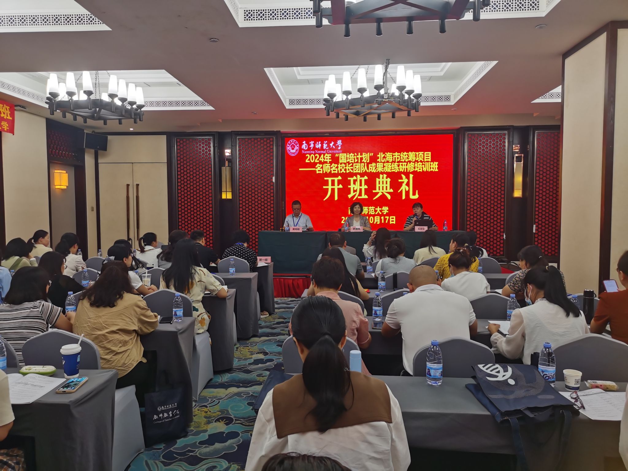 10月17日,由北海市教育局主办、南宁师范大学承办的2024年“国培计划”北海市统筹项目——名师名校长团队成果凝练研修培训班在南宁顺利开班。北海市教育教学科学研究所所长罗德凤,南宁师范大学教师教育学院院长王文蓉及学院有关负责人,来自北海市名师名校长名班主任工作室成员、特级教师工作坊成员、“雁阵工程”培养对象及其他优秀骨干教师共60人参加了培训开班典礼。