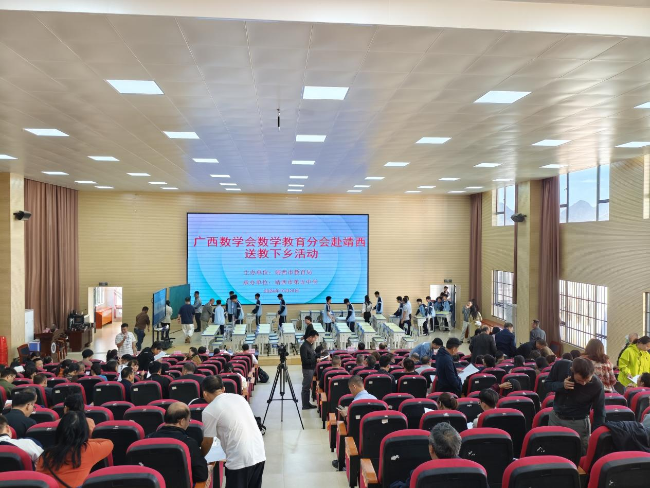 10月25日上午在靖西市开展边境数学教育大中小一体化建设系列活动。靖西市教育局局长杨景山等相关人员参加了活动。活动分为三个内容,一是全体调研组成员与靖西市教育局局长杨景山等相关人员就靖西市数学教育大中小一体化建设、边境地区基础教育现状及存在的问题和困难、学生就业和实习等问题开展研讨交流;二是广西现代教育杂志社名誉社长兼总编辑黎海英为靖西市中小学、幼儿园教师作了“教育教学论文写作与投稿”的讲座,为广大教师提供切实的写作技巧和投稿能力的培训;三是教师教育学院副院长陶源泉为城区初中学校七、八年级数学科任教师和各乡(镇)初中数学科教研组长和七、八年级备课组作“基于课堂观察视角---走向数学专业的听评课教研活动”的讲座,并在此基础上开展数学与统计学院学科教学(数学)研究生与靖西市教师进行同课异构活动。