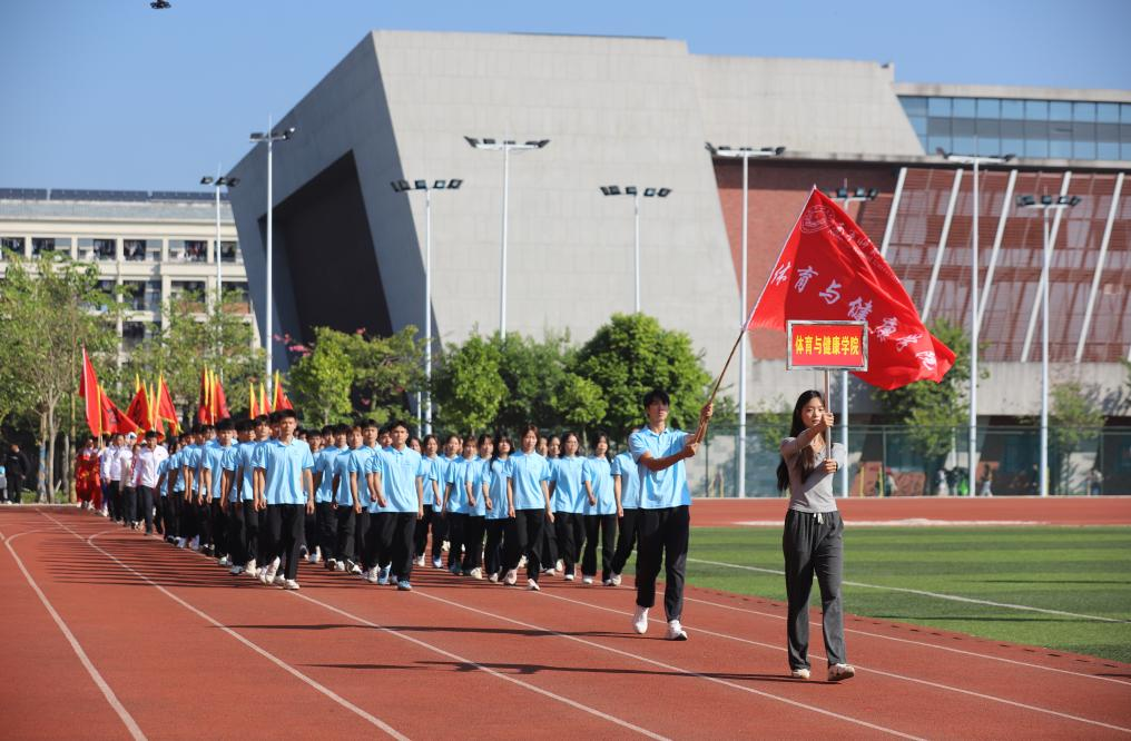 伴随着激昂的《运动员进行曲》,红旗护卫队、各学院方块队迈着矫健整齐的步伐、喊着充满斗志的口号依次入场,展现出我校师生蓬勃的朝气与顽强拼搏、昂扬向上的精神风貌和对这场体育盛会的期待与热爱之情。