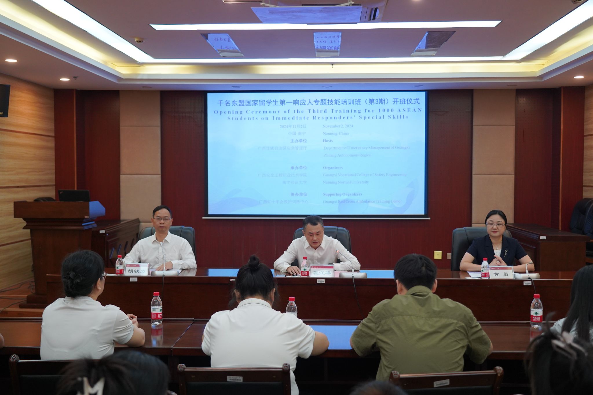 11月2日至3日,第3期“千名东盟国家留学生第一响应人”专题技能培训班在我校明秀校区举行。本期培训由自治区应急管理厅主办,广西安全工程职业技术学院、南宁师范大学承办,广西红十字救护训练中心协办。我校来自越南、泰国、老挝等东盟国家的近50名留学生参加开班仪式和培训。