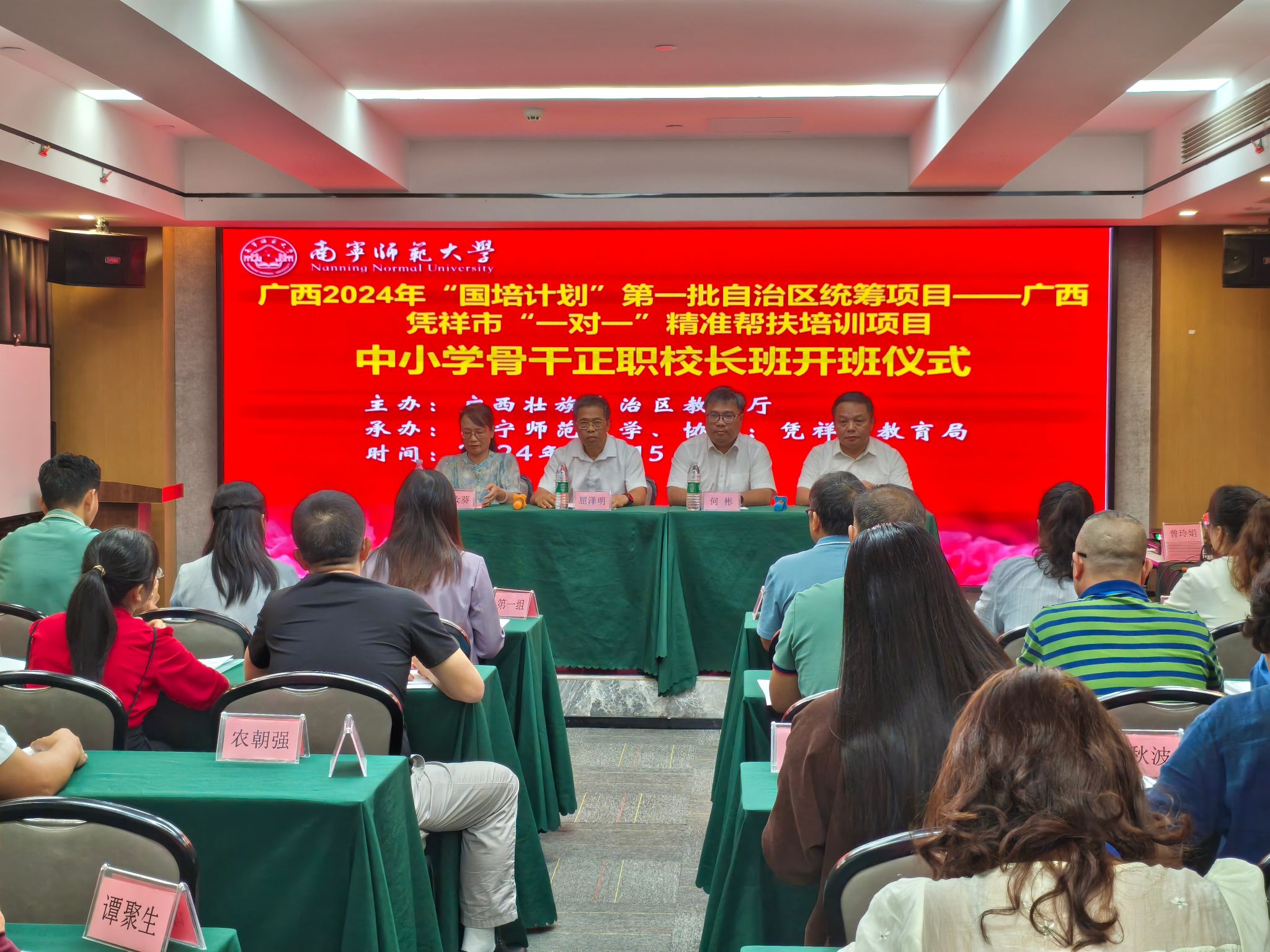 10月15日至22日,由南宁师范大学承办的广西壮族自治区2024年“国培计划”首批自治区统筹项目——广西凭祥市“一对一”精准帮扶项目(中小学校长培训班)圆满落幕。该项目旨在促进崇左市凭祥市中小学校长的专业发展及教育管理能力提升,通过“线下集中培训+送教下乡”的创新模式,为凭祥市的50名中小学校长提供全面而深入的指导与支持。